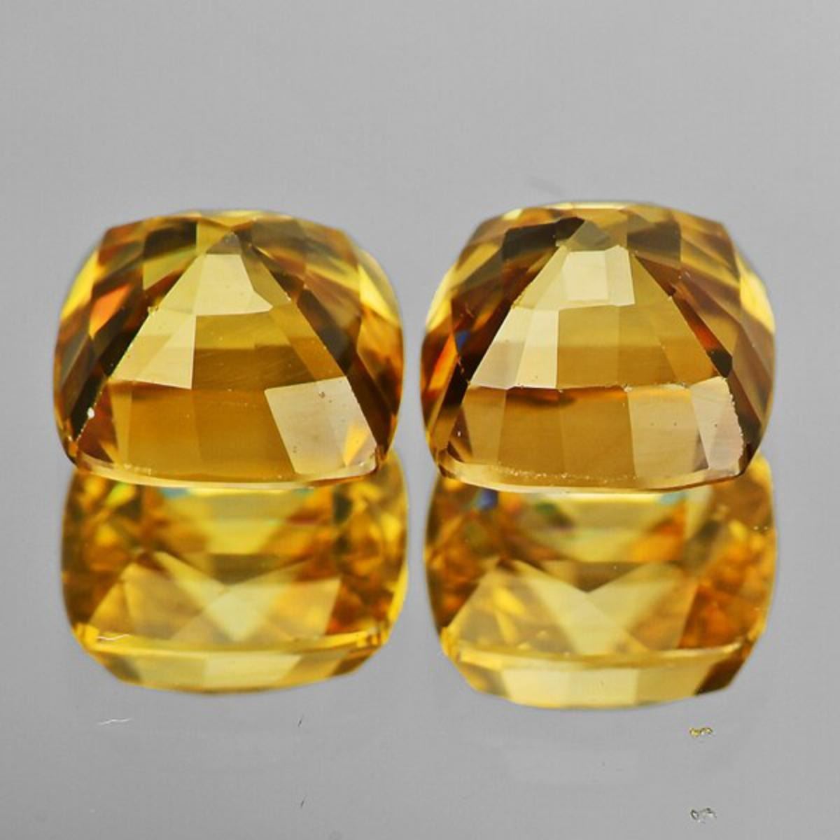 Natural Zircon (Earthly Mined)SIZE ( L x W x D ) : 6.00 mm;COLOR : Imperial Golden AAA+SHAPE : Cushion;QUANTITY : 2 pieces;LUSTER : Extreme Brilliancy;CLARITY : Flawless-VVS1 ; HARDNESS : 7.5;ORIGIN : Sri-Lanka; TREATMENT : 100% Natural Unheated;