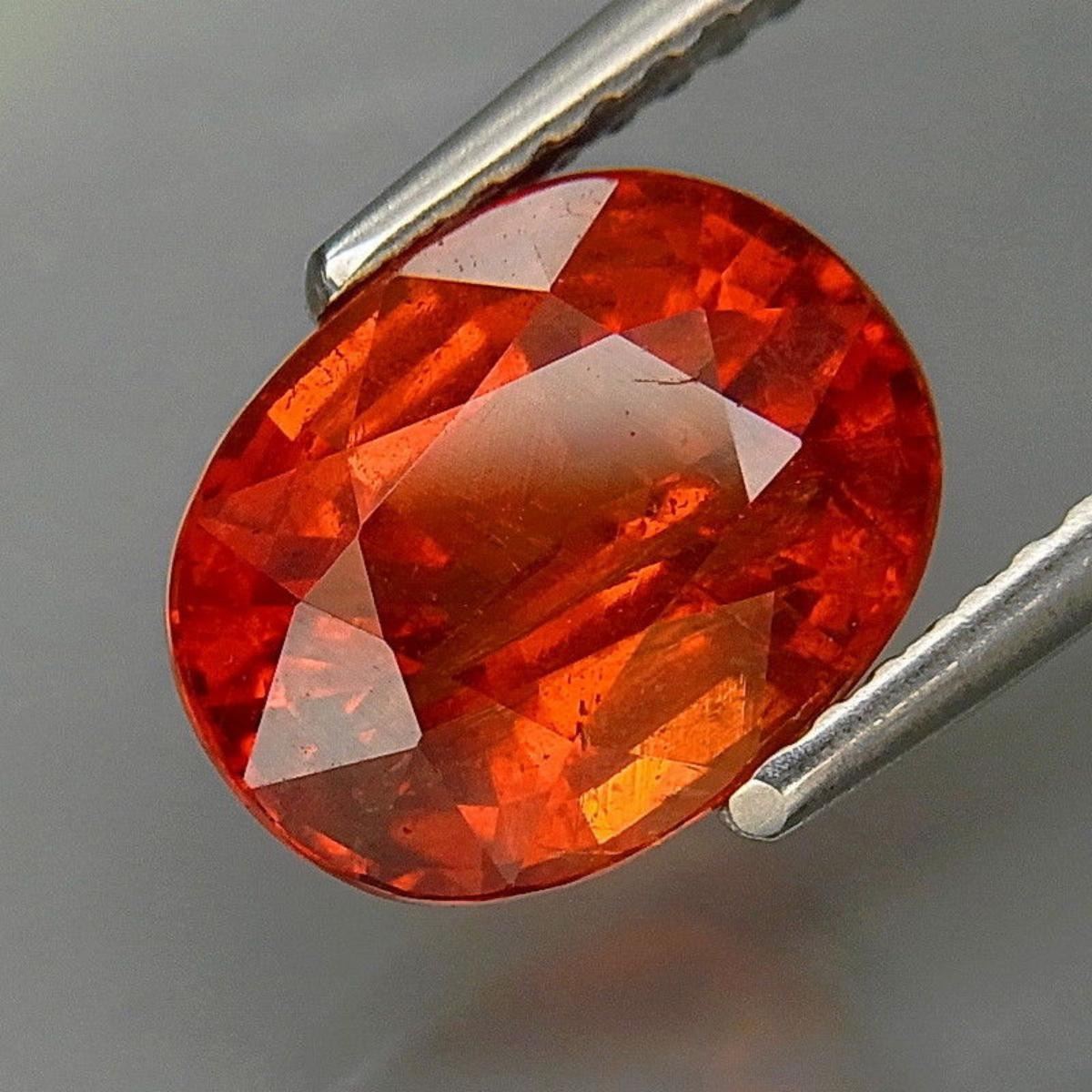 Spessartite Garnet SHAPE Oval WEIGHT 3.73 Ct.SIZE 9.5 X 7.5 X 5.5 mm QUANTITY 1 Piece COLOR Best Orange Red CLARITYn SI; LUSTER Superior; ORIGIN Africa; TREATMENT None HARDNESS 7-7.5