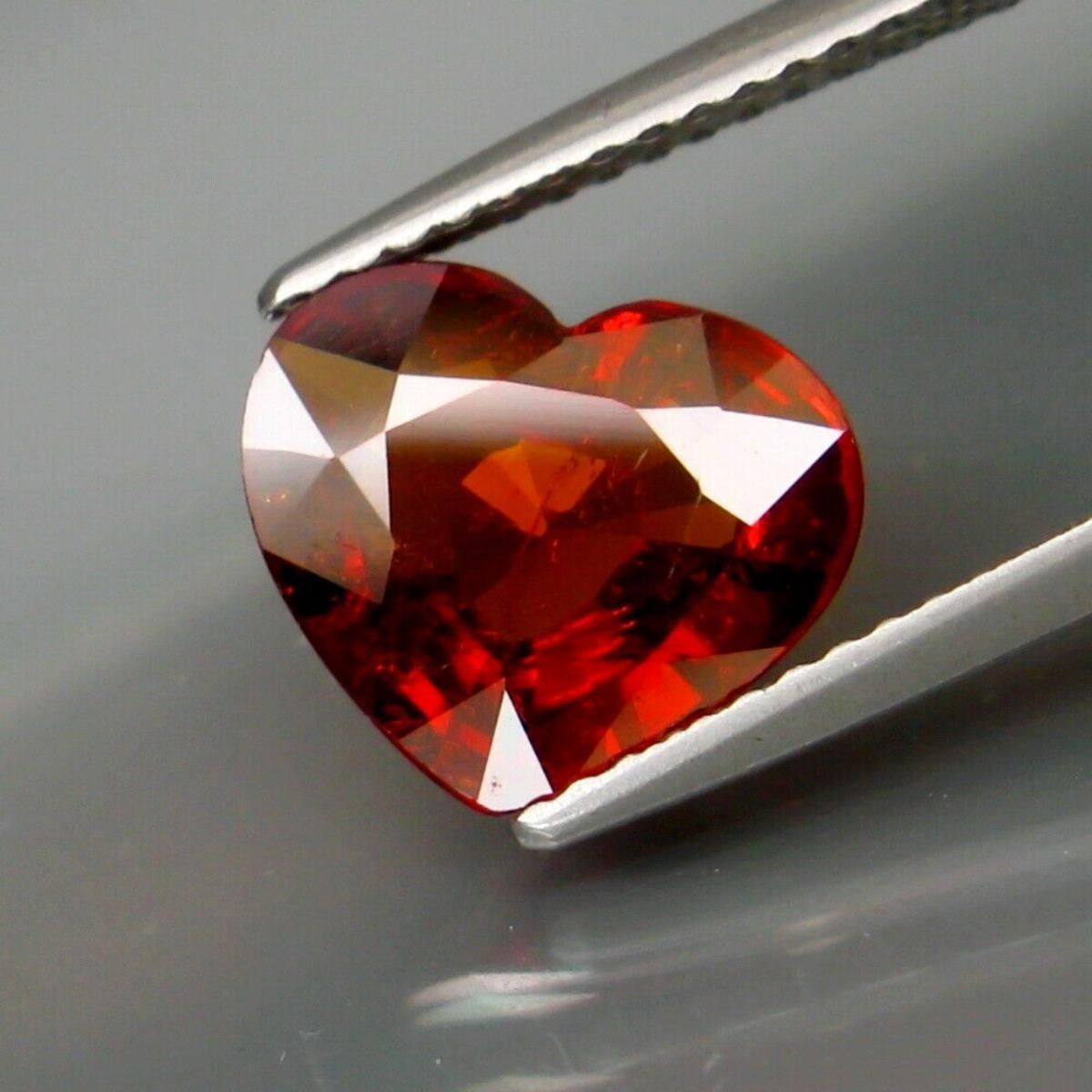 Spessartite Garnet SHAPE Heart Shape ;WEIGHT 2.66 Ct. SIZE 10 X 8.9 X 3.7 mm QUANTITY 1 Piece COLOR Best Orange Red CLARITY VS LUSTER Superior ORIGIN Africa TREATMENT None HARDNESS 7-7.5