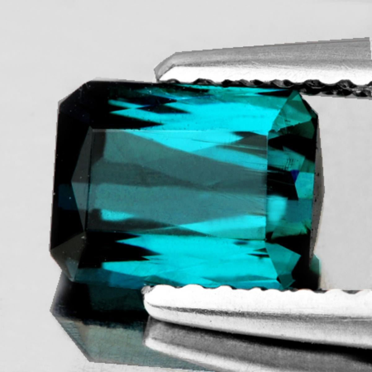 Natural Tourmaline; WEIGHT : 1.86 cts; SHAPE : Rectangle (Scissor Cut) SIZE ( L x W x D ) : 7.01 x 5.31 x 4.98 mm; QUANTITY : 1 piece; COLOR : Indicolite Greenish Blue ; AAA Color; CLARITY : Flawless-VVS ; AAA Grade; ORIGIN : Nigeria; HARDNESS : 7; LUSTER : Best AAA Neon!!! TREATMENT : 100% Natural Unheated
