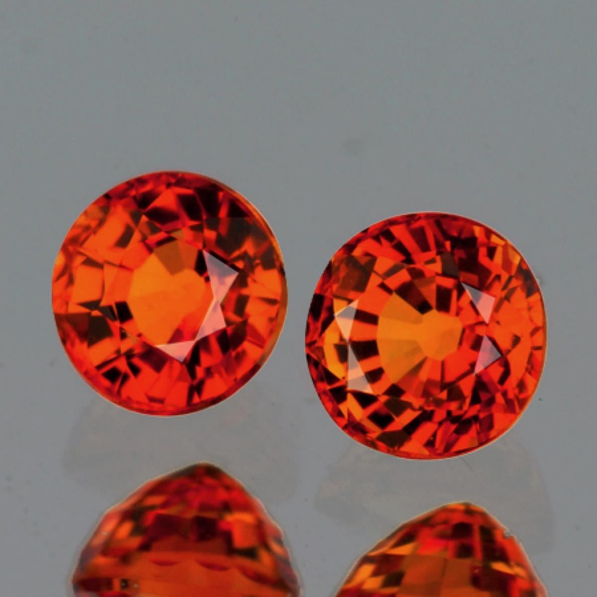 Natural Orange Sapphire WEIGHT : 1.00 cts SHAPE : Round SIZE ( L x W x D ) : 4.40 mm QUANTITY : 2 pieces ( Perfectly Matched Pair) COLOR : Intense Orange AAA Color CLARITY : Flawless-VVS1 AAA Grade ORIGIN : Ceylon HARDNESS : 9 LUSTER : Excellent!!!
