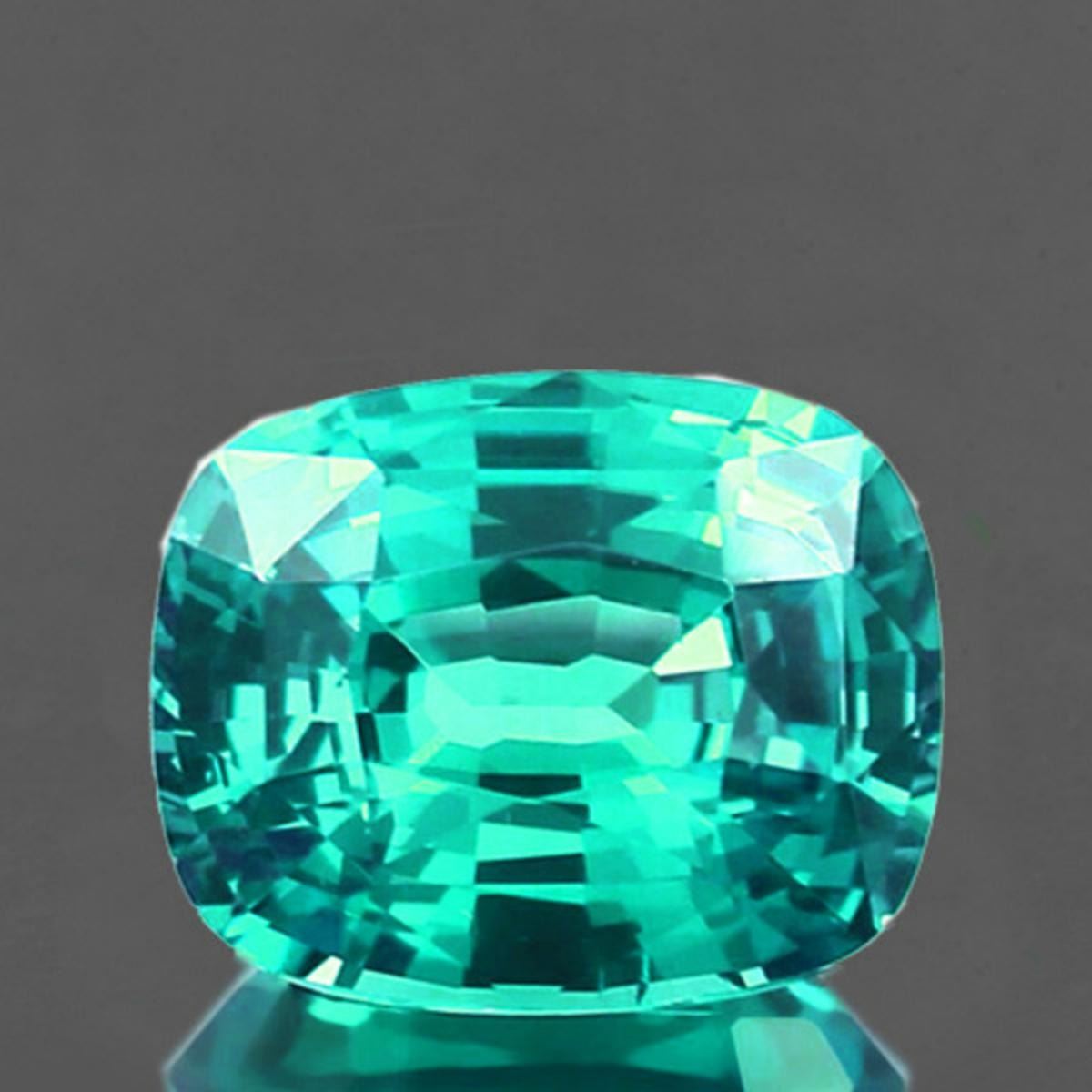 WEIGHT : 1.14 ctSTONE NAME : Natural Apatite (Earthly Mined)SIZE ( L x W x D ) : 7.03 x 5.48 x 3.82 mm COLOR : Blue Green Intense AAASHAPE : CushionQUANTITY : 1 pieceLUSTER : ExcellentCLARITY : VVSHARDNESS : 5ORIGIN : Madagascar TREATMENT : 100% Natural Unheated