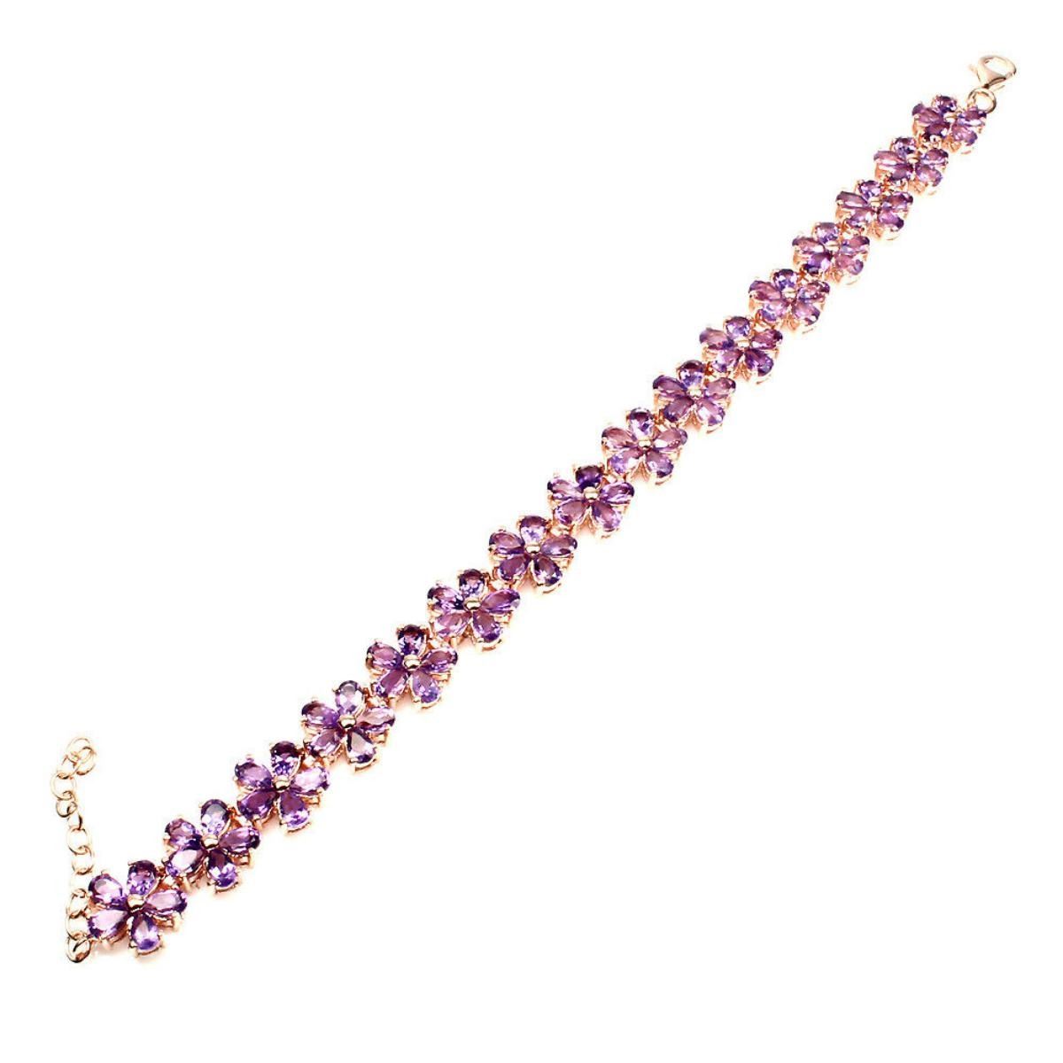 925 STERLING SILVERPLATE14K ROSE GOLDRING SIZE/LENGTH (INCHES)8.5MAIN STONEAMETHYSTOTHER GEMSTOTAL WEIGHT92.22 CT (TOTAL WEIGHT OF SILVER + STONE)DIMENSION* STONE 5.0 X 3.0 MM. * FACE BRACELET 171.0 X 11.0 MM.MAIN STONE SHAPEPEAR CUTMAIN STONE COLORTOP INTENSE PURPLECLARITY/GRADEIF TO VVSLUSTERBEAUTEOUSTREATMENTUNHEATEDORIGINBrazilHARDNESS7.0