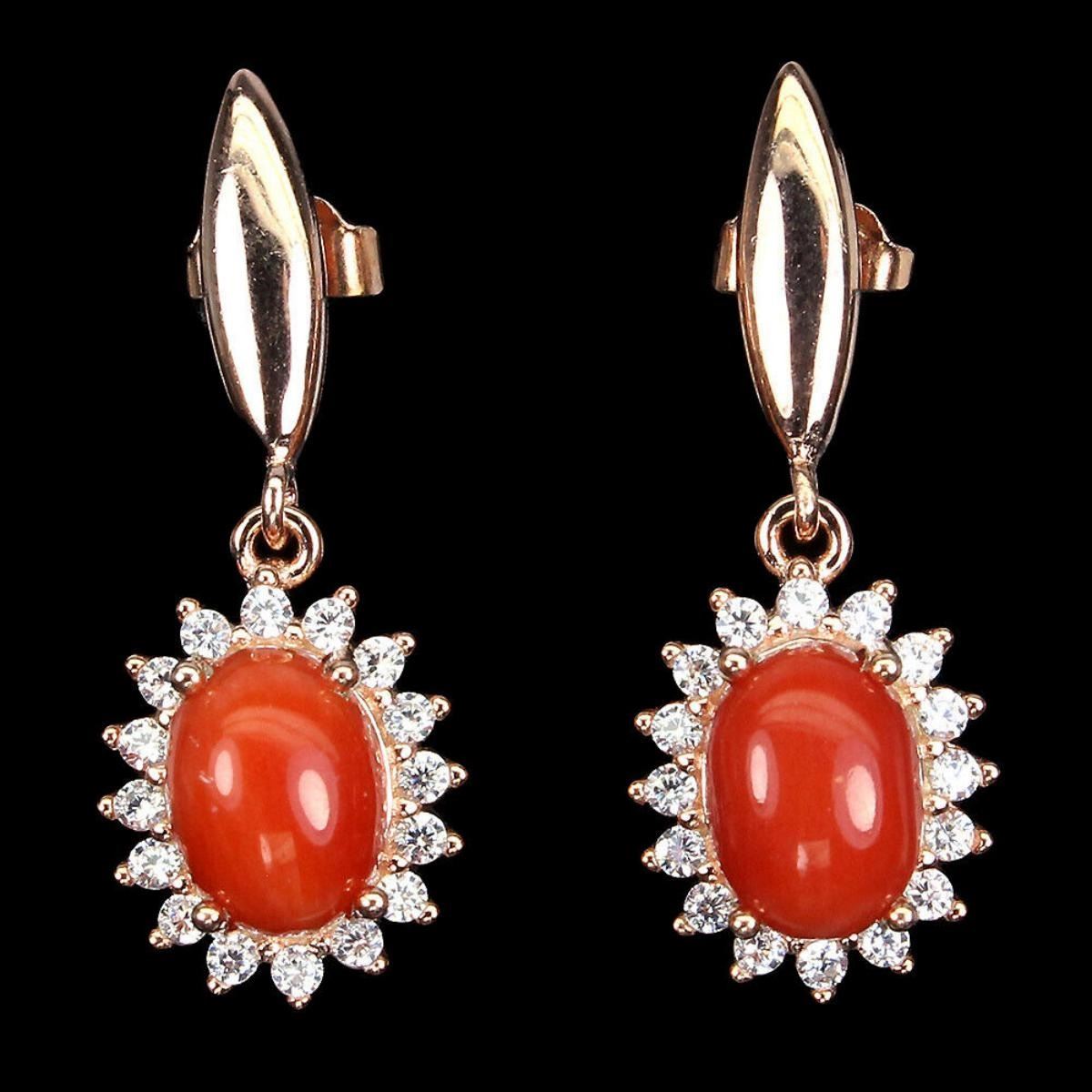 925 STERLING SILVER;PLATE-14K ROSE GOLD;MAIN STONE-CORAL;TOTAL WEIGHT-3.36 GRAM (TOTAL WEIGHT OF SILVER + STONE);DIMENSION- * STONE 8.0 X 6.0 MM.* FACE EARRINGS 25.0 X 10.0 MM.;MAIN STONE SHAPE-OVAL CABOCHON;MAIN STONE COLOR- ORANGE;TREATMENT-UNTREATED;ORIGIN-ITALY;HARDNESS-3;