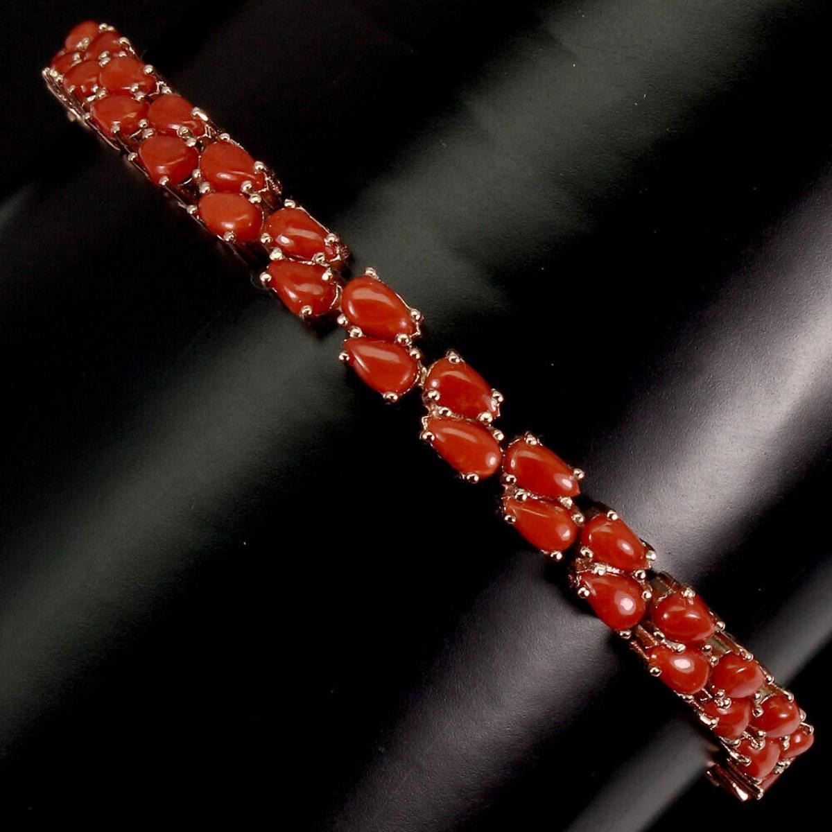 925 STERLING SILVER;PLATE14K ROSE GOLD;LENGTH (INCHES)7.5;MAIN STONE-CORAL;TOTAL WEIGHT-12.56 GRAM (TOTAL WEIGHT OF SILVER + STONE)DIMENSION* STONE 5.0 X 3.0 MM. * FACE BRACELET 180.0 X 6.0 MM.MAIN STONE SHAPE-PEAR CABOCHON;MAIN STONE COLOR-TOP RICH ORANGE;CLARITY/GRADE-OPAQUE;LUSTER-PRECIOUS;TREATMENT-UNHEATED;ORIGIN-ITALY;HARDNESS-3;