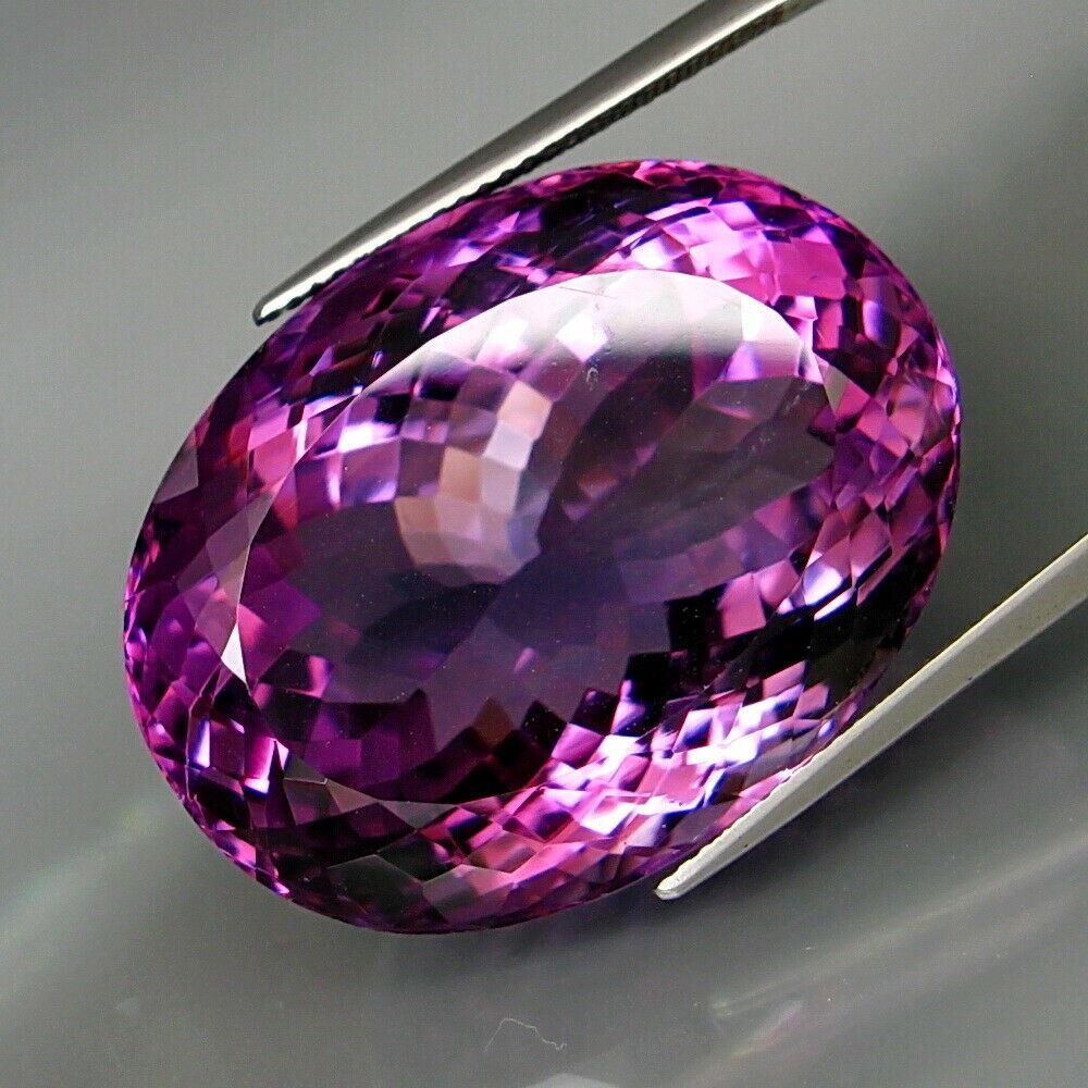 Amethyst SHAPE Oval WEIGHT 70.53 Ct.SIZE 29.5 X 22.2 X 17 mm QUANTITY 1 Piece COLOR Purple CLARITY CLEAN LUSTER Superior ORIGIN Brazil; TREATMENT None HARDNESS 7