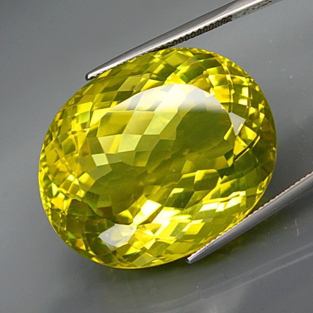 Lemon Quartz SHAPE Oval WEIGHT 148.79 Ct.SIZE 38.4 X 31.3 X 20.5 mm QUANTITY 1 Piece COLOR Lemon Yellow CLARITY VVS/VS LUSTER Superior ORIGIN Brazil TREATMENT None HARDNESS 7;....................Yellow Quartz brings the benefit of clarity for decision-making, relief from 'burnout', panic, nervousness or exhaustion, sharper memory and concentration skills, and protection from lethargy and depression during dull weather. Unlike Citrine, which is translucent in color, Yellow Quartz has a more “milky” opaque coloring. Use Yellow Quartz on the Solar Plexus chakra to help you learn from your experiences and gain self-confidence. Yellow as a color symbolizes wisdom, warmth, creative joy!Physically, Yellow Quartz can ease digestive system ailments; increases metabolism and brain function; helps with food intolerance, and hyperactivity.