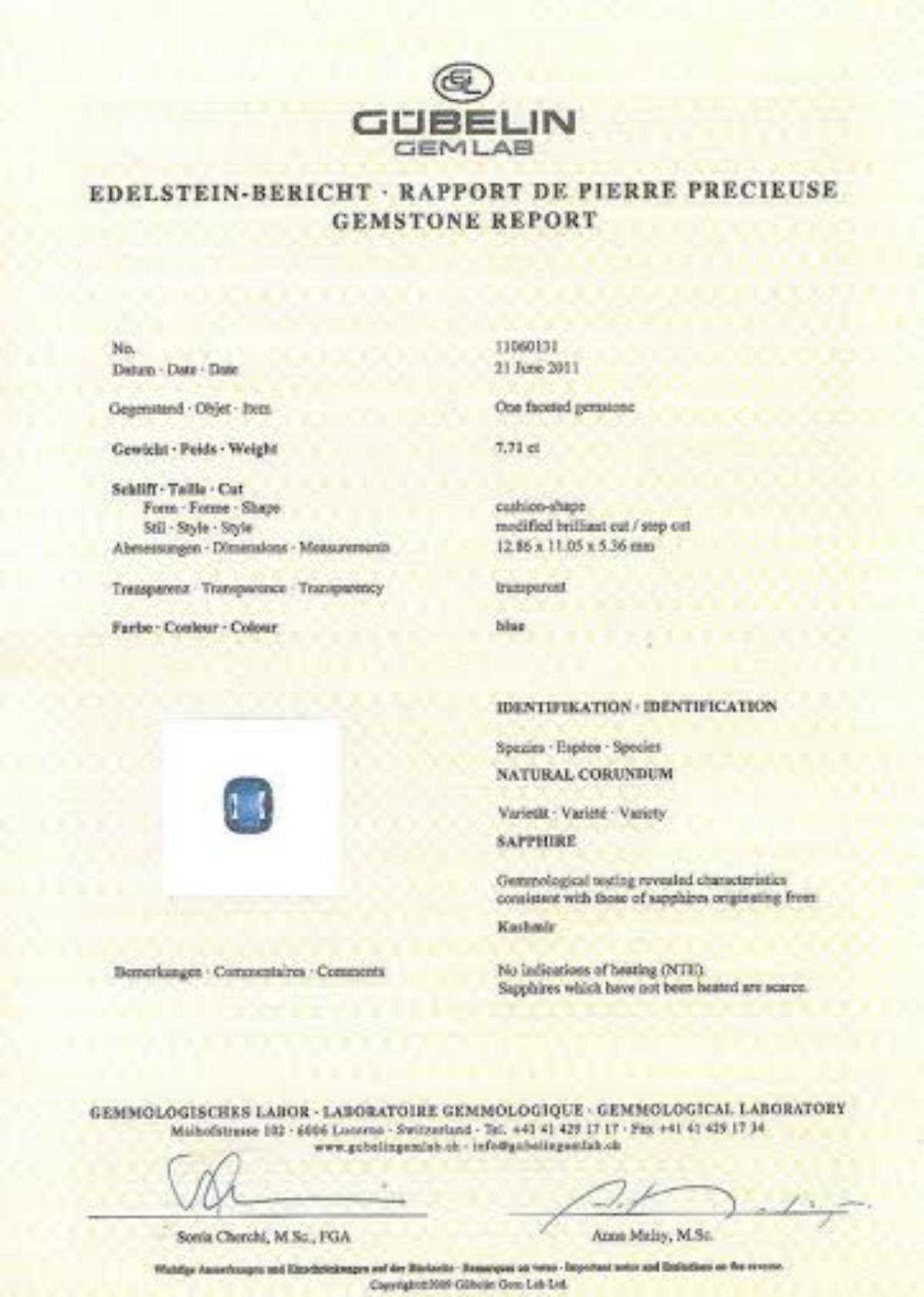 Natural Kashmir Sapphire Ring - Gubelin........7.71 carats.....cushion cut.......completely untreated sapphire......100% Natural and Origin - Kashmir.