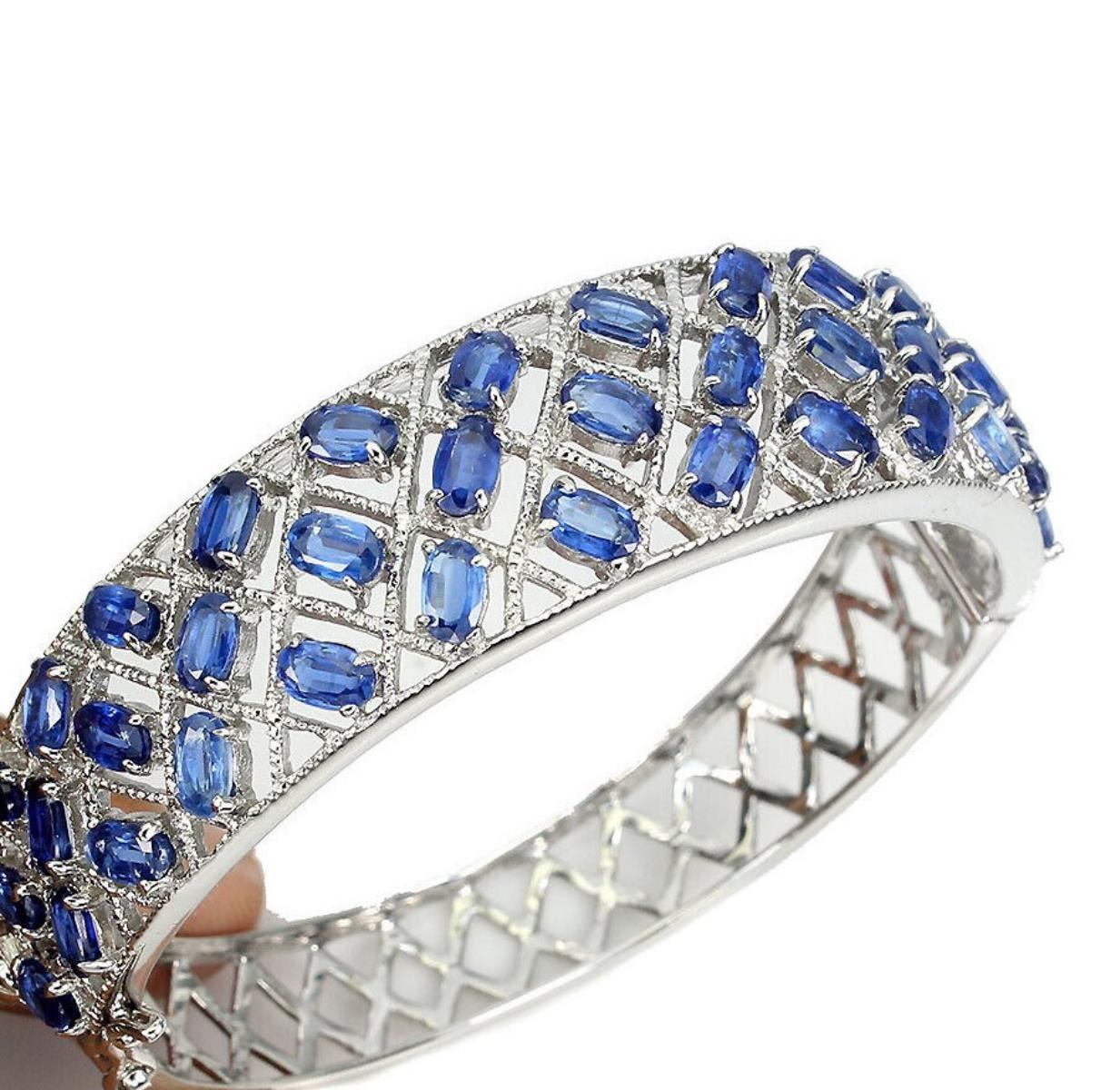 925 STERLING SILVER;PLATE-14K WHITE GOLD;LENGTH (INCHES)-2.1;MAIN STONE-KYANITE;TOTAL WEIGHT-24.55 GRAM (TOTAL WEIGHT OF SILVER + STONE);DIMENSION- * STONE 5.0 X 3.0 MM.* DIAMETER 2.1 INCHES.* FACE BANGLE 61.0 X 16.0 MM.;MAIN STONE SHAPE-OVAL ;MAIN STONE COLOR- BLUE;CLARITY/GRADE-IF TO VVS;TREATMENT-UNHEATED;ORIGIN-NEPAL;HARDNESS-5.0 - 7.0;