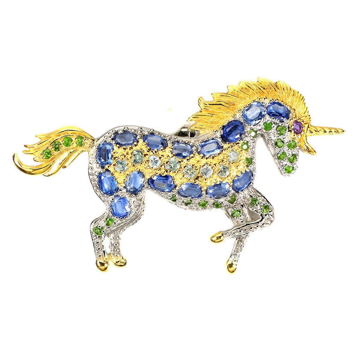 925 STERLING SILVER;PLATE-2-TONE WHITE & YELLOW 14K GOLD;MAIN STONE-KYANITE;OTHER GEMS-AMETHYST, AQUAMARINE, CHROME DIOPSIDE;TOTAL WEIGHT-8.2 GRAM (TOTAL WEIGHT OF SILVER + STONE)DIMENSION-* STONE 2.0 TO 4.0 X 3.0 MM. * FACE BROOCH 64.0 X 33.0 MM.MAIN STONE SHAPE-OVAL CUT;MAIN STONE COLOR-BLUE;TREATMENT-UNHEATED;ORIGIN-NEPAL & Russsia;HARDNESS-5;