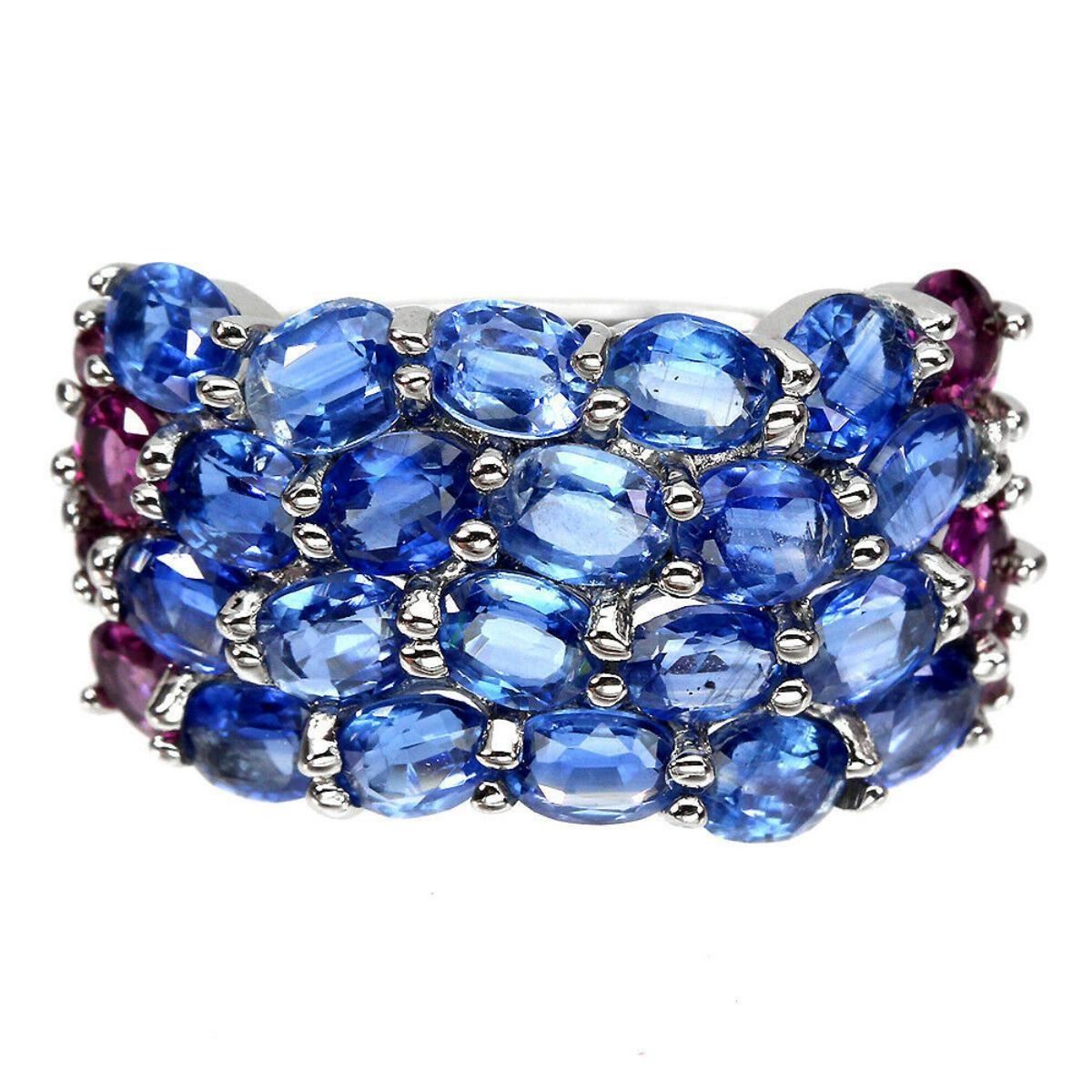 925 STERLING SILVER;PLATE-14K WHITE GOLD;RING SIZE(resizeable)7;MAIN STONE-KYANITE;OTHER GEMS-RHODOLITE GARNET;TOTAL WEIGHT-3.32 GRAM (TOTAL WEIGHT OF SILVER + STONE)DIMENSION-* STONE 1.5 TO 4.0 X 3.0 MM. * RING SIZE 7.0 * FACE RING- 22.0 X 12.0 MM.;MAIN STONE SHAPE-OVAL CUT;MAIN STONE COLOR-TOP RICH BLUE;CLARITY/GRADE-TRANSPARENT;TREATMENT-UNHEATED;ORIGIN-NEPAL;HARDNESS-5;