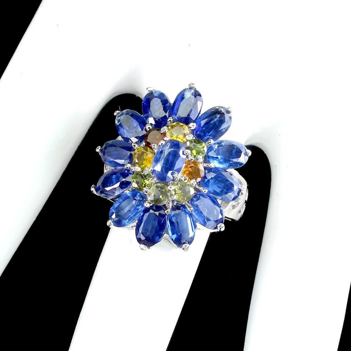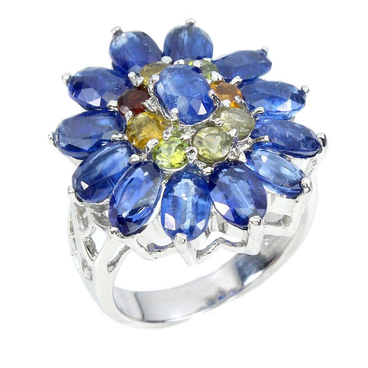 925 STERLING SILVER;PLATE-14K WHITE GOLD;RING SIZE-7(RESIZABLE);MAIN STONE-KYANITE;OTHER GEMS-SAPPHIRE;TOTAL WEIGHT- 8.34GRAM (TOTAL WEIGHT OF SILVER + STONE);DIMENSION-* STONE 3.0 TO 6.0 X 4.0 MM.* RING SIZE 7.0* FACE RING 24.0 X 21.0 MM.;MAIN STONE SHAPE-OVAL CUT;MAIN STONE COLOR- BLUE;TREATMENT-UNHEATED;ORIGIN-NEPAL;HARDNESS-5.0 - 7.0;