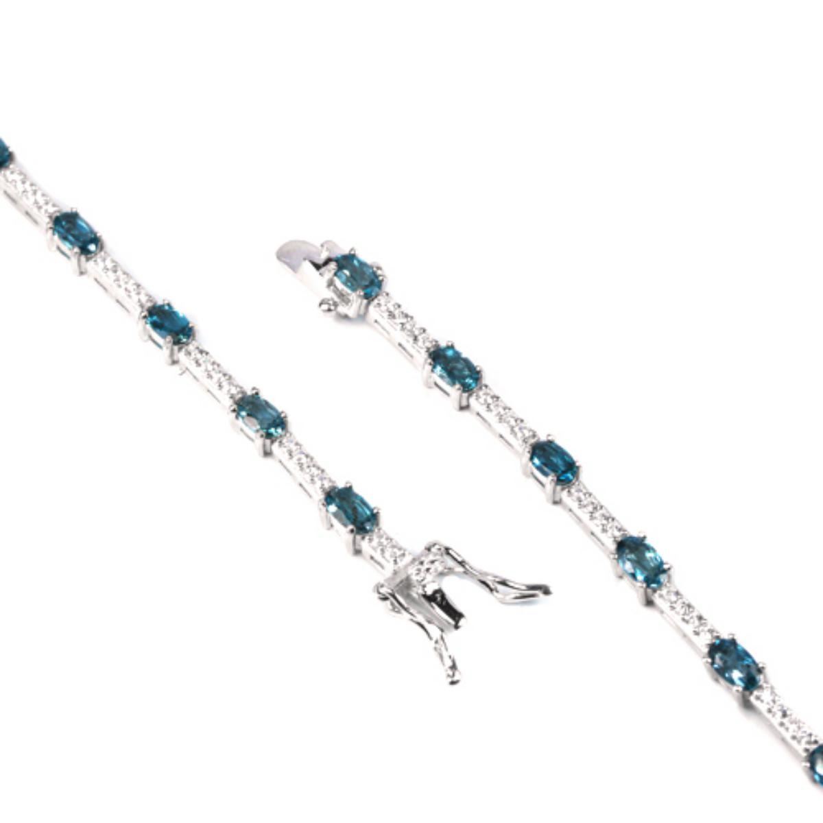 GENUINE AAA LONDON BLUE TOPAZ & CZ 925 SILVER BRACELET 14K WHITE GOLD COATING; LENGTH OF ITEM (Inch.)7.75 ;ITEM QUANTITY1STONE SHAPEOVALSTONE DIMENSION5 X 3 MM.ITEM WEIGHT8.9 GRAMCOLORLONDON BLUECLARITYIF - VVSLUSTERDAZZLINGTREATMENTIRRADIATIONORIGIN OF STONEAFRICAHARDNESS8.0WHITE CUBIC ZIRCONIA 1.5 MM.