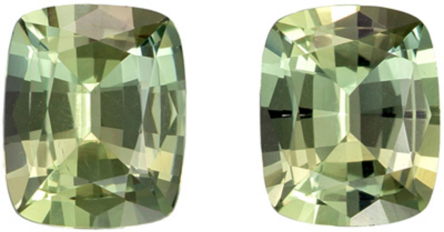 Natural Light Green Tea Amethyst Pair 26.75 Ct - FLawless; size 16.50x14.50 MM; Color - Light Green Tea; Cushion cut; Origin Brazil;