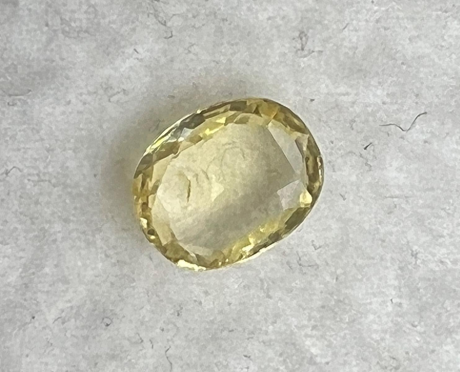 Natural Light Yellow Ceylon Sapphire; Weight-2.46 Cts; Size-9.33x7.41 MM; Shape- Oval; Color - Light Yellow; Clarity - SI; Origin- Ceylon; Untreated....natural earth mined.