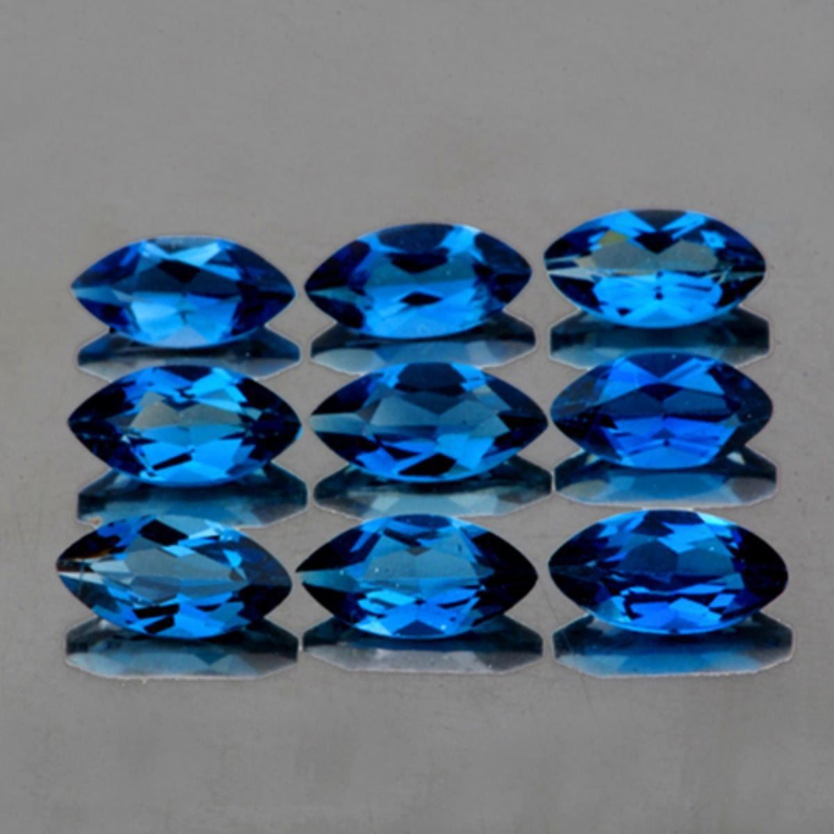 Natural Topaz ;SHAPE : Marquise SIZE ( L x W x D ) : 8.00 x 4.00 mm; QUANTITY : 6 pieces (Perfectly Matched Set) COLOR : London Blue AAA Color; CLARITY : Flawless-VVS1; ORIGIN : Africa; HARDNESS : 8; LUSTER : Excellent; TREATMENT : Heated;