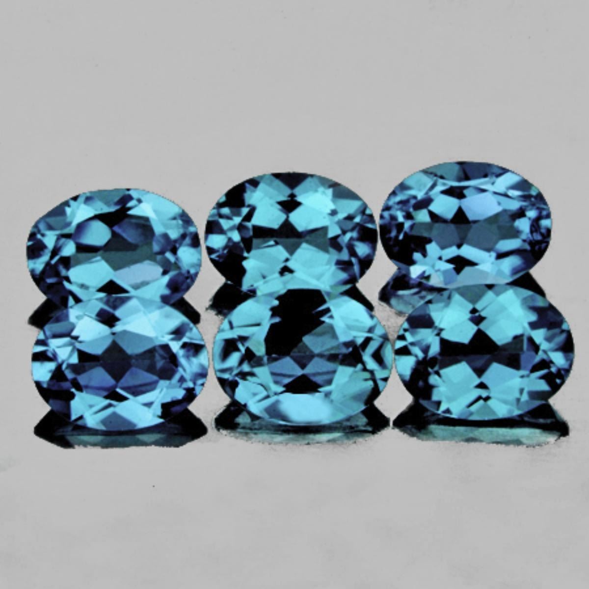 Natural London Blue Topaz WEIGHT : 5.80 cts; SHAPE : Oval; SIZE ( L x W x D ) : 7.00 x 5.00 mm; QUANTITY : 6 pieces ( Perfectly Matched Set) COLOR : London Blue ; CLARITY : Flawless-VVS; ORIGIN : Brazil; HARDNESS : 8; LUSTER : AAA Fire!!! TREATMENT : Heated;