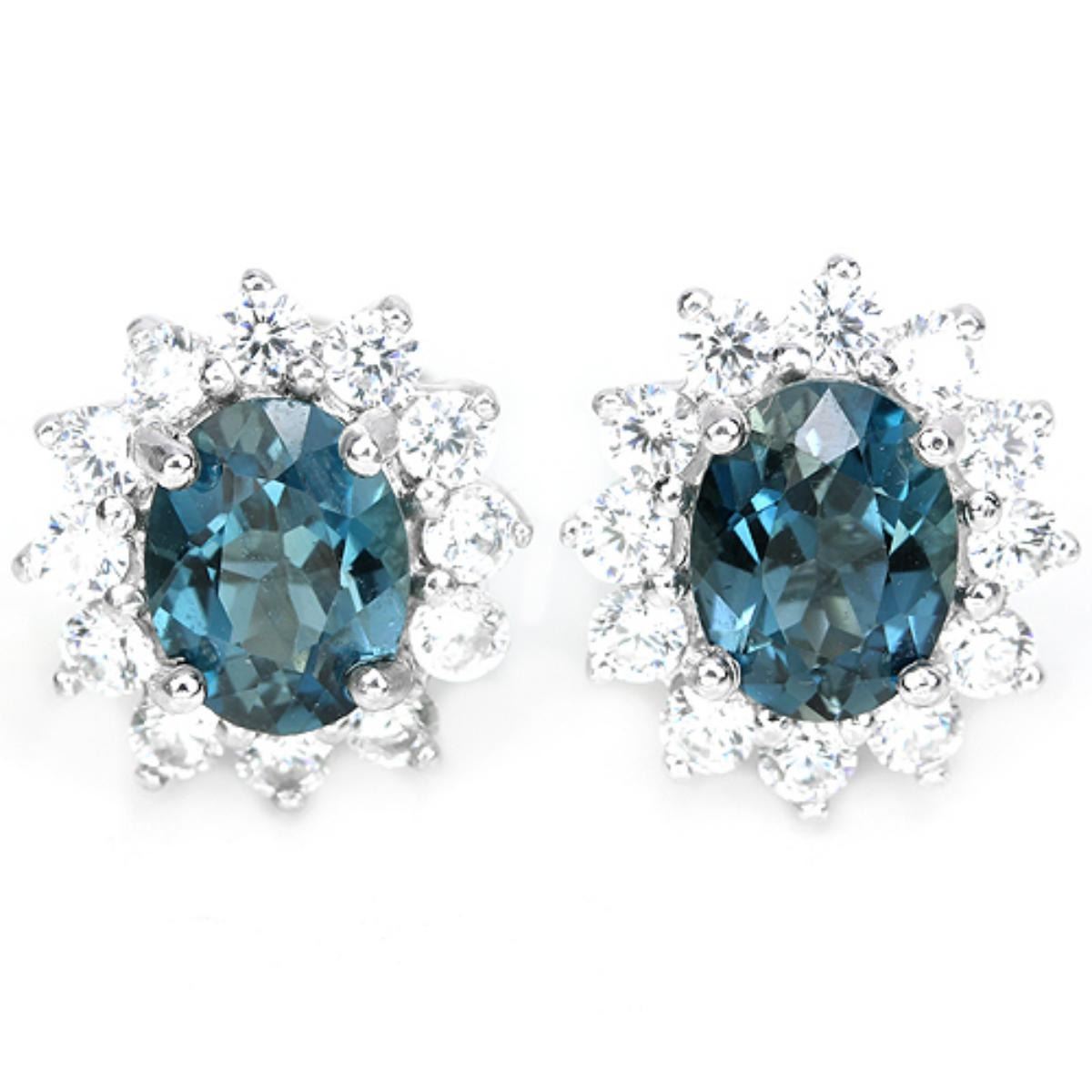GENUINE 8X6 MM. LONDONBLUE TOPAZ CZ 925 SILVER EARRING 14K WHITE GOLD COATING; STONE SHAPE-OVAL;STONE DIMENSION-8 X 6 MM.;ITEM WEIGHT-3.9 GRAM;COLOR-LONDON BLUE;CLARITY-IF TO VVS;TREATMENT-IRRADIATION;ORIGIN OF STONE-AFRICA;HARDNESS-8;FACE OF EARRING -13 X 12 MM. ;WHITE CUBIC ZIRCONIA 2.2 MM.