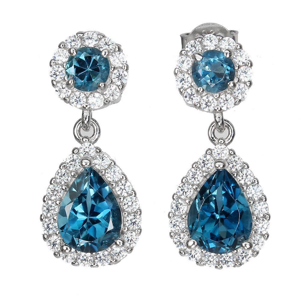925 STERLING SILVER;PLATE-14K WHITE GOLD;MAIN STONE-LONDON BLUE TOPAZ;TOTAL WEIGHT-4.5 GRAM (TOTAL WEIGHT OF SILVER + STONE);DIMENSION-* STONE 4.0 TO 8.0 X 6.0 MM.* FACE EARRINGS 22.0 X 10.0 MM.;MAIN STONE SHAPE-PEAR;MAIN STONE COLOR- LONDON BLUE;CLARITY/GRADE-IF TO VVS;TREATMENT-IRRADIATED;ORIGIN-AFRICA;HARDNESS-8.0;