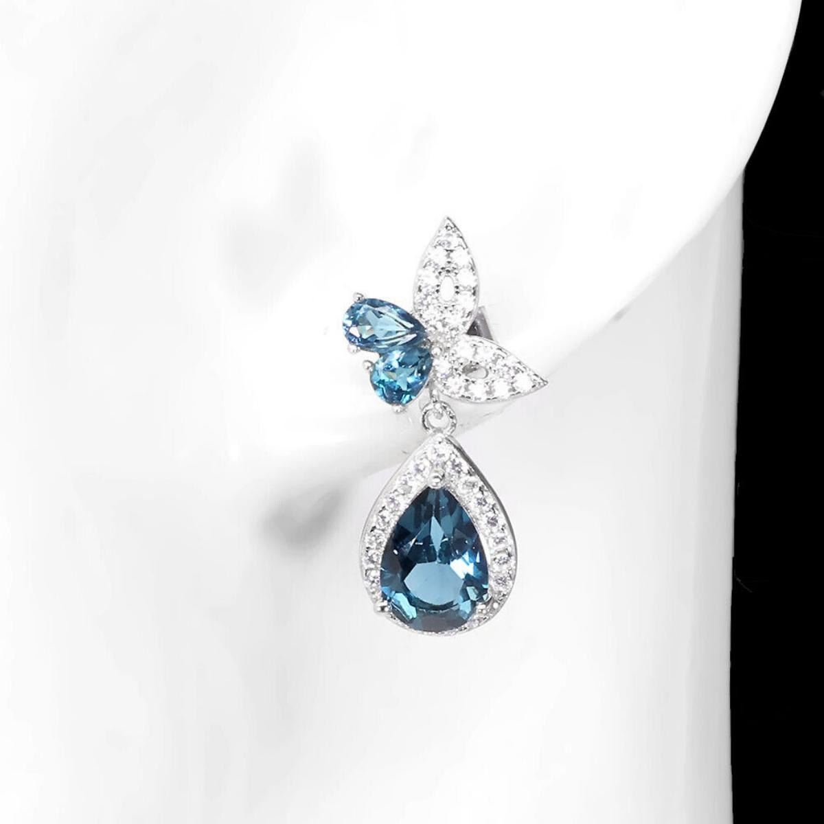 925 STERLING SILVER;MAIN STONE-LONDON BLUE TOPAZ;TOTAL WEIGHT-4.6 GRAM (TOTAL WEIGHT OF SILVER + STONE)DIMENSION-* STONE 4.0 X 3.0 TO 9.0 X 6.0 MM. * CZ 1.0 MM. * FACE EARRINGS- 25.0 X 12.0 MM.;MAIN STONE SHAPE-PEAR CUT;MAIN STONE COLOR-LONDON BLUE;CLARITY/GRADE-IF TO VVS;TREATMENT-IRRADIATED;ORIGIN-AFRICA;HARDNESS-8;