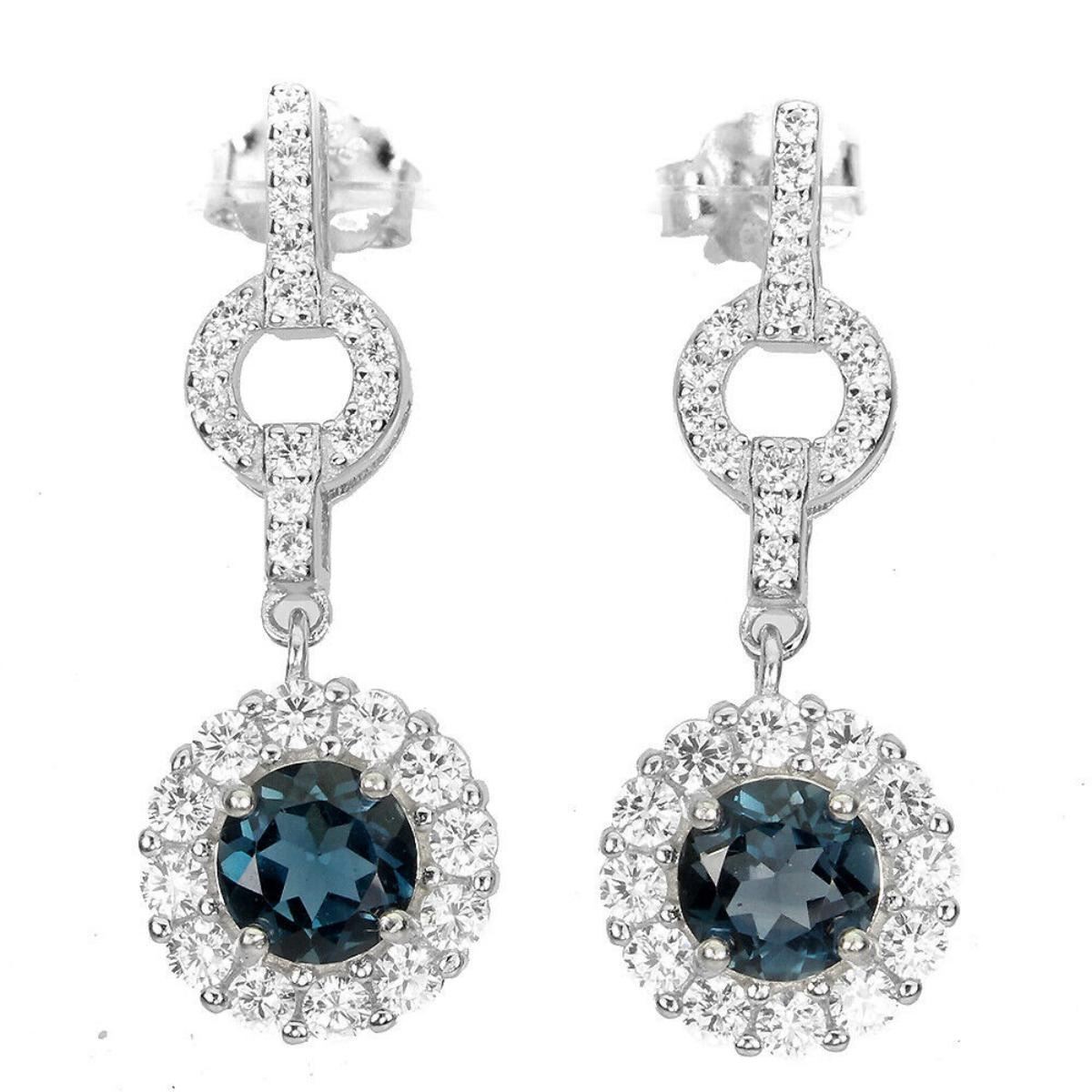 925 STERLING SILVER;PLATE-14K WHITE GOLD;MAIN STONE-LONDON BLUE TOPAZ;TOTAL WEIGHT-3.91 GRAM (TOTAL WEIGHT OF SILVER + STONE)DIMENSION-* STONE 5.5 MM.;;* FACE EARRINGS- 27.0 X 10.0 MM.;MAIN STONE SHAPE--ROUND CUT;MAIN STONE COLOR-TOP LONDON BLUE;CLARITY/GRADE-IF TO VVS;TREATMENT-IRRADIATED;ORIGIN-AFRICA;HARDNESS-8.0;