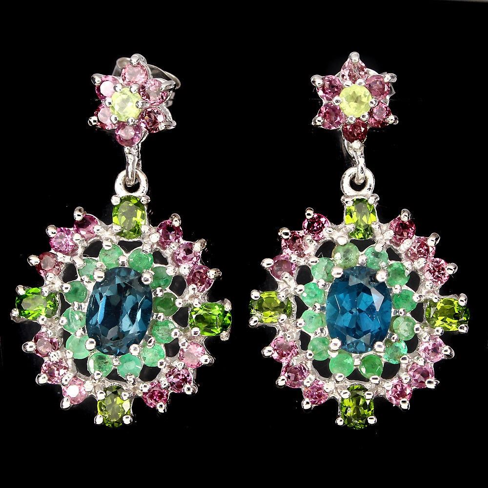 925 STERLING SILVER ;PLATE...14K WHITE GOLD;MAIN STONE-LONDON BLUE TOPAZ;OTHER GEMS-CHROME DIOPSIDE,EMERALD,PERIDOT,RHODOLITE GARNET;TOTAL WEIGHT-59.37 CT (TOTAL WEIGHT OF SILVER + STONE)DIMENSION* STONE 2.0 TO 8.0 X 6.0 MM. * FACE EARRINGS 35.0 X 20.0 MM.;MAIN STONE SHAPE-OVAL CUT;MAIN STONE COLOR-TOP LONDON BLUE;CLARITY/GRADEIF;ORIGIN-AFRICA;HARDNESS5.0 - 8.0