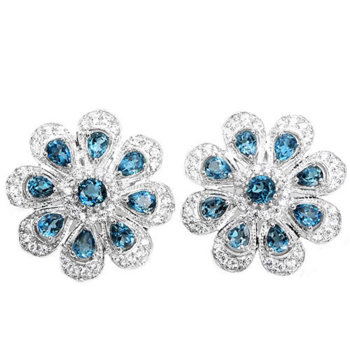 GENUINE LONDON BLUE TOPAZ WHITE CZ 925 SILVER EARRING 14K WHITE GOLD COATING; STONE SHAPE-PEAR ROUND PORTUGUESE CUT;STONE DIMENSION-4 X 3 MM. , 4 MM.;ITEM WEIGHT-8.9 GRAM;COLOR-LONDON BLUE;CLARITY-IF TO VVS;LUSTER-ENCHANTING;TREATMENT-IRRADIATION;ORIGIN OF STONE-AFRICA;HARDNESS-8;FACE OF EARRING 23 X 22 MM. ;WHITE CUBIC ZIRCONIA 1.3 MM.