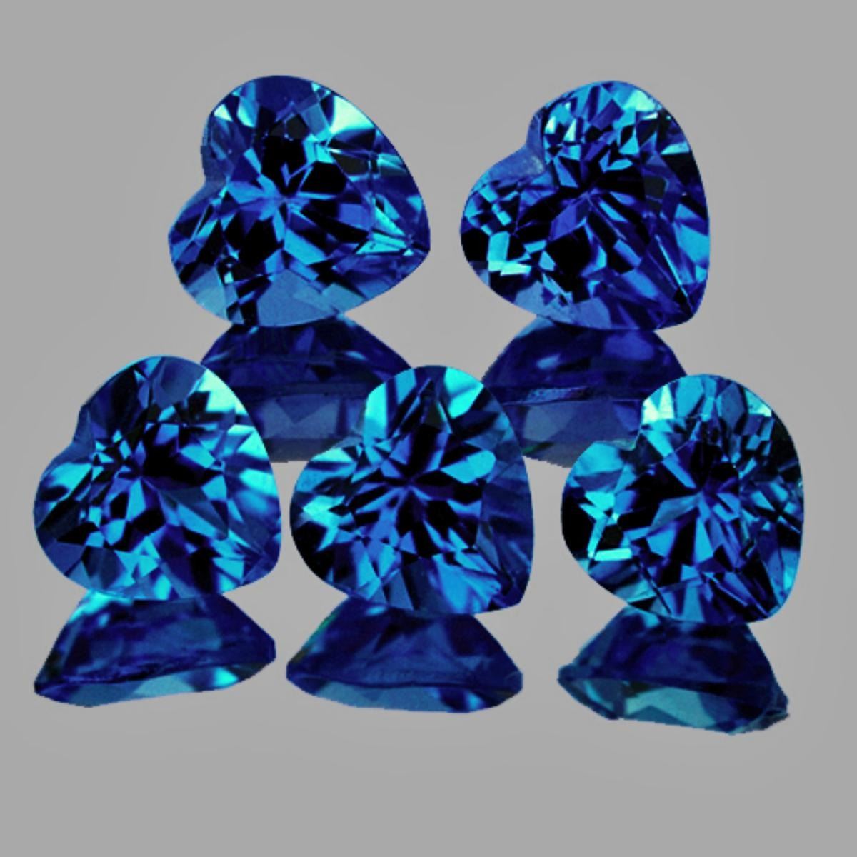 Natural London Blue Topaz 4.23 cts; SHAPE : Heart; SIZE : 6.00 mm; QUANTITY : 5 pieces COLOR : London Blue; CLARITY : Flawless-VVS1 ; ORIGIN : Brazil; HARDNESS : 8; LUSTER : AAA Fire!! TREATMENT : Heated;