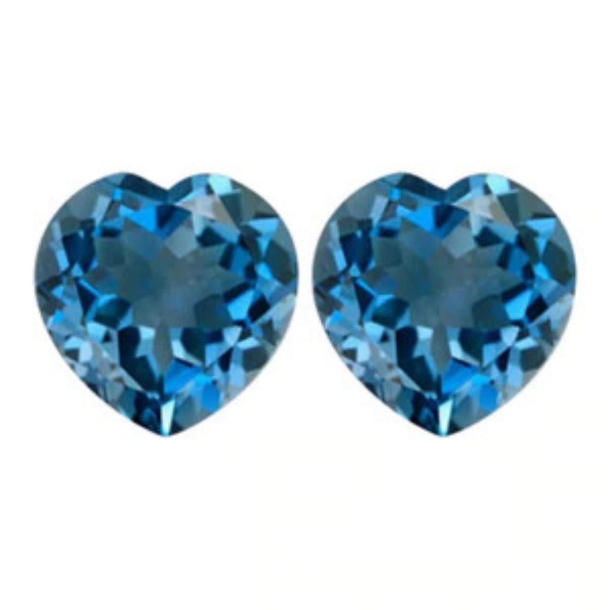 Natural London Blue Topaz; SHAPE : Heart; SIZE : 7.00 mm; QUANTITY : 2 pieces (Perfctly Matched Pair) COLOR : London Blue; CLARITY : Flawless-VVS1 ; ORIGIN : Brazil; HARDNESS : 8; LUSTER : AAA Fire!! TREATMENT : Heated;