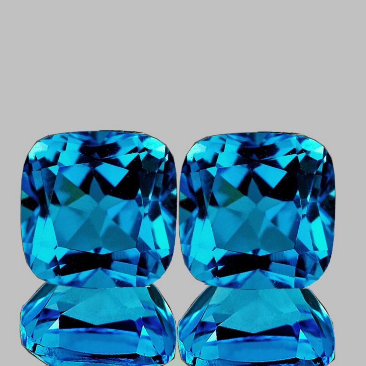 Natural Swiss Blue Topaz; SHAPE : Cushion; SIZE ( L x W x D ) : 8.00 mm; QUANTITY : 2 pieces (Perfctly Matched Pair) COLOR : London Blue ; CLARITY : Flawless-VVS1; ORIGIN : Brazil; HARDNESS : 8; LUSTER : Best Sparkling!!! TREATMENT : Heated;