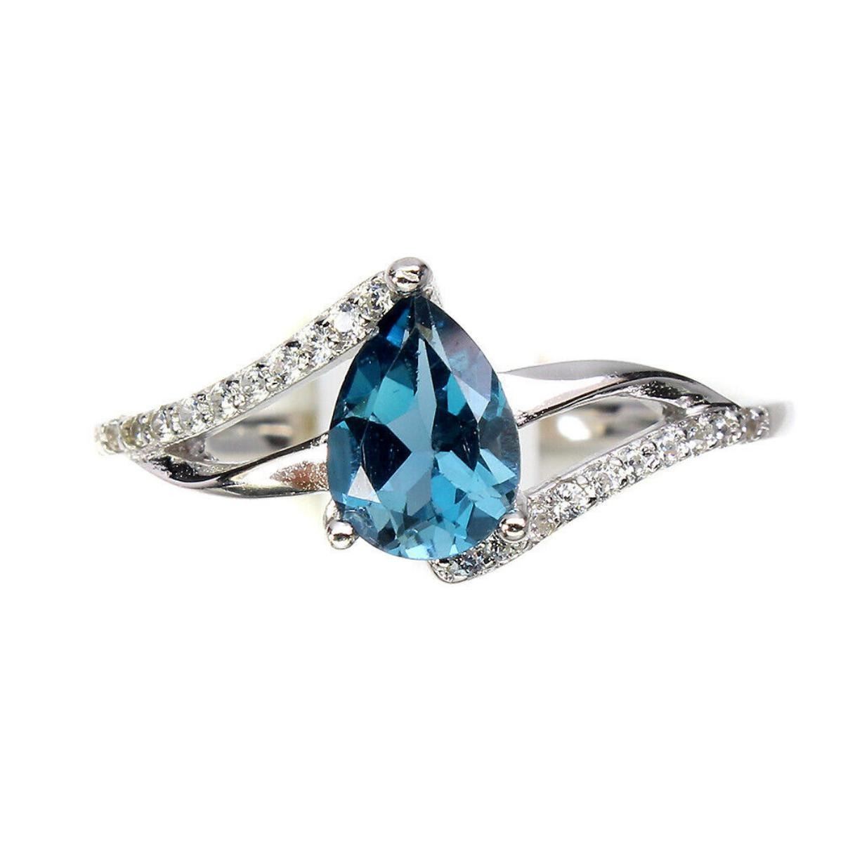 925 STERLING SILVER;PLATE-14K WHITE GOLD;RING SIZE-8(RESIZABLE);MAIN STONE-LONDON BLUE TOPAZ;TOTAL WEIGHT-1.63 GRAM (TOTAL WEIGHT OF SILVER + STONE);DIMENSION-* STONE 7.0 X 5.0 MM.* RING SIZE 8.0* FACE RING 19.0 X 9.0 MM.;MAIN STONE SHAPE-PEAR CUT;MAIN STONE COLOR-LONDON BLUE;CLARITY/GRADE-IF;TREATMENT-HEATED;ORIGIN-AFRICA;HARDNESS-8.0;