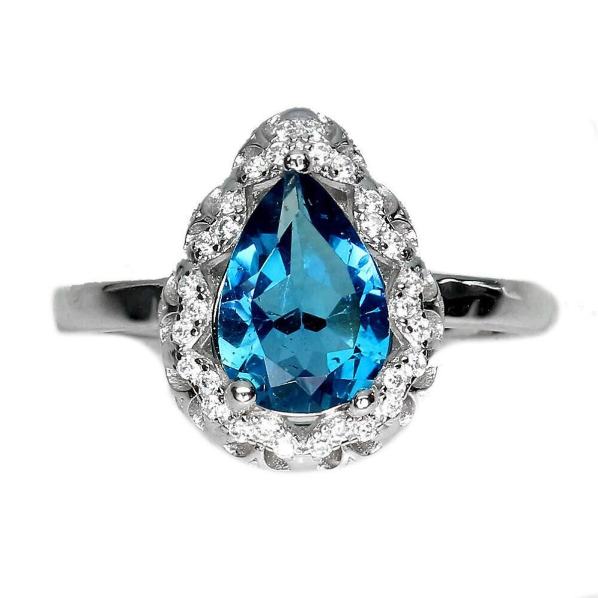 925 STERLING SILVER;PLATE-14K WHITE GOLD;RING SIZE-9(RESIZABLE);MAIN STONE-LONDON BLUE TOPAZ;TOTAL WEIGHT-3.56 GRAM (TOTAL WEIGHT OF SILVER + STONE);DIMENSION-* STONE 10.0 X 7.0 MM.* RING SIZE 9.0* FACE RING 15.0 X 12.0 MM.;MAIN STONE SHAPE-PEAR CUT;MAIN STONE COLOR-LONDON BLUE;CLARITY/GRADE-IF;TREATMENT-HEATED;ORIGIN-AFRICA;HARDNESS-8.0;