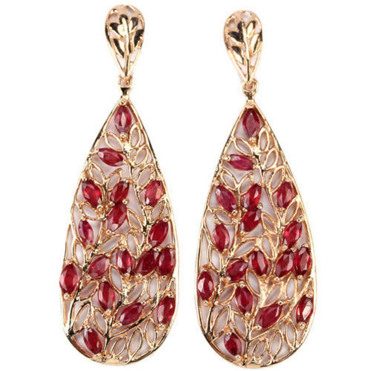 RED RUBY MARQUISE 925 SILVER EARRING 14K PINK GOLD COATING; STONE SHAPEMARQUISE FACET CUTSTONE DIMENSION5 X 2.5 MM. 4 X 2 MM.ITEM WEIGHT6.93 GRAMCOLORBLOOD REDCLARITYTRANSLUCENTLUSTERELEGANTTREATMENTHEATEDORIGIN OF STONEAFRICAHARDNESS9.0;FACE OF EARRING 53 X 18 MM.