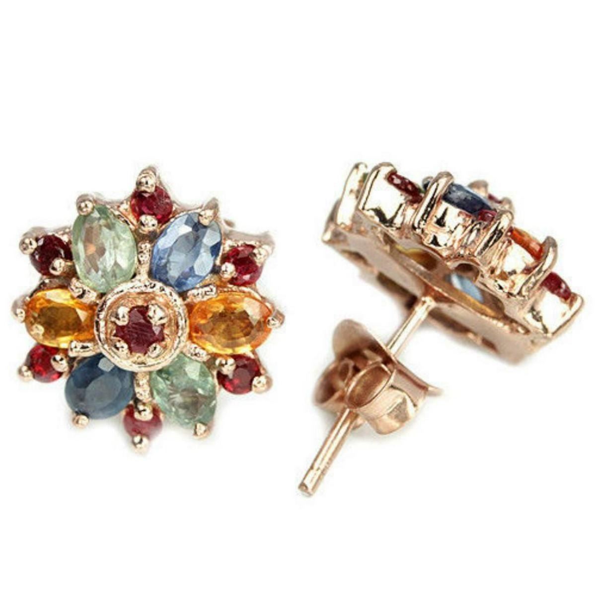 MULTI COLOR SAPPHIRE & RUBY 925SILVER EARRING 14K WHITE GOLD COATING; STONE SHAPEOVAL & ROUND FACET CUTSTONE DIMENSION4 X 3 MM. , 2.2 MM. & 2 MM.ITEM WEIGHT4.3 GRAMCOLORMULTI COLORCLARITYVVS - VSLUSTERALLURINGTREATMENTHEATEDORIGIN OF STONEAFRICAHARDNESS9.0FACE OF EARRING 14 X 14 MM.