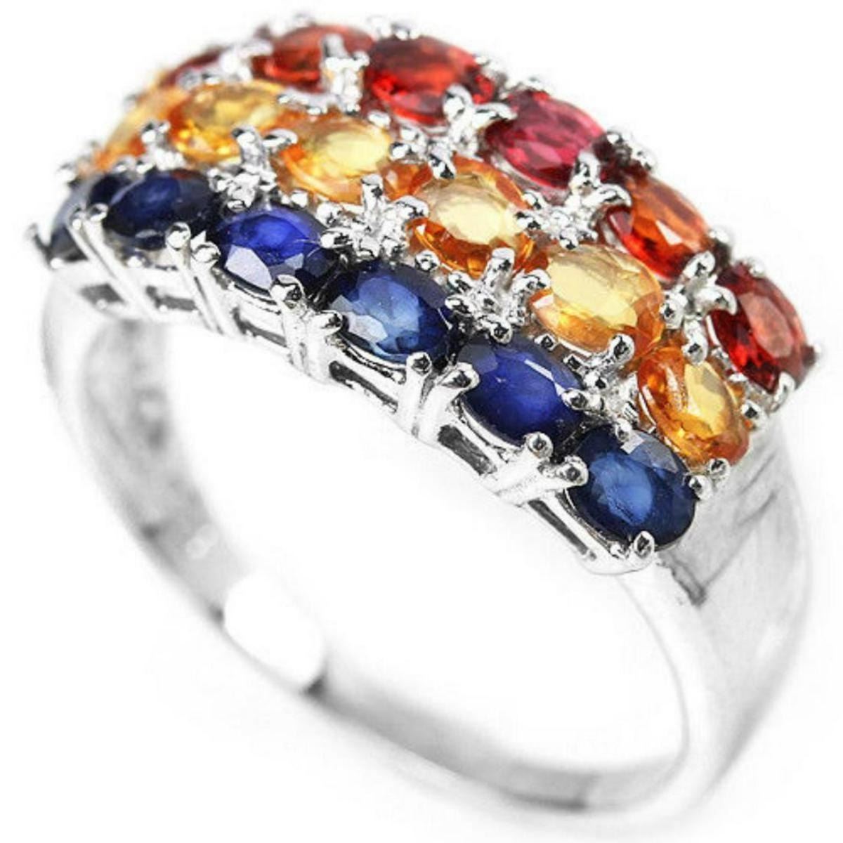 GENUINE MULTI COLOR SAPPHIRE OVAL 925 SILVER RING 14K WHITE GOLD COATING; RING SIZE 9.25 ( can be resized ) ITEM QUANTITY 1 STONE SHAPE OVAL FACET CUT STONE DIMENSION 4 X 3 MM. ITEM WEIGHT 4.1 GRAM COLOR MULTI COLOR CLARITY VVS - VS; TREATMENT -HEATED; ORIGIN OF STONE -AFRICA; HARDNESS -9.0; ; FACE OF RING 20 X 10 MM.