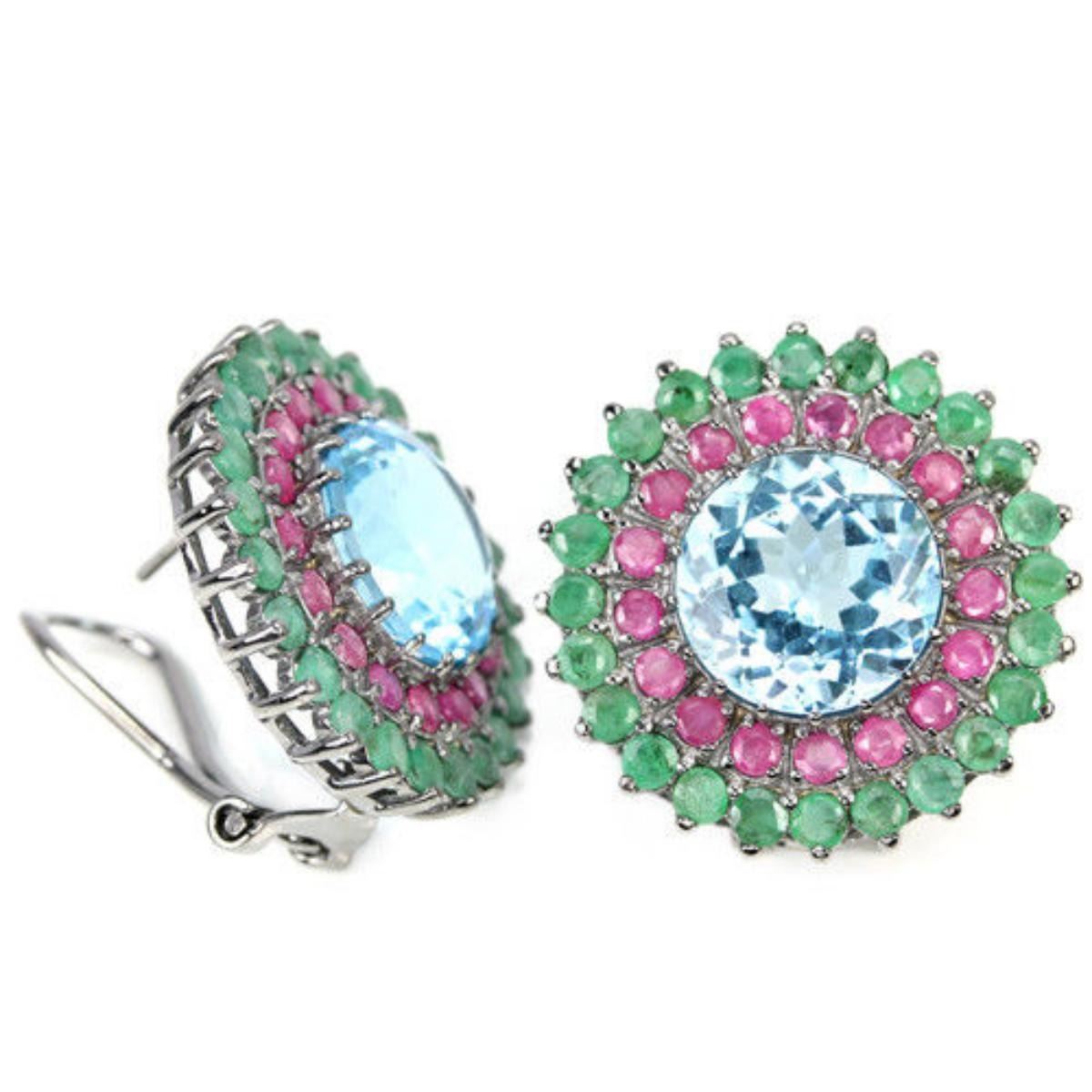 REAL MULTI COLOR TOPAZ RUBY EMERALD 925 SILVER EARRING 14K BLACK GOLD COATING; STONE SHAPEROUNDSTONE DIMENSION12 MM. , 2.7 MM. & 2.5 MM.ITEM WEIGHT14.2 GRAMCOLORMULTI COLORCLARITYIF & TRANSLUCENTLUSTERALLURINGTREATMENTIRRADIATION, UNHEATED & HEATEDORIGIN OF STONEAFRICAHARDNESS7.5 - 9.0;FACE OF EARRING 25 X 25 MM.