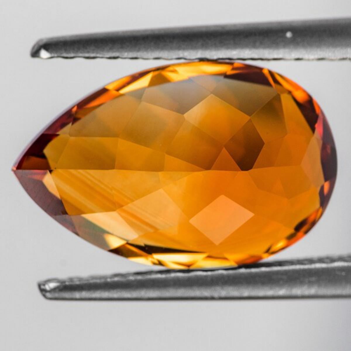 Natural CitrineSIZE ( L x W x D ) : 12.79 x 8.07 x 5.55 mmCOLOR : Madeira OrangeSHAPE : PearQUANTITY : 1 pieceLUSTER : Excellent CLARITY : Flawless-VVSHARDNESS : 7ORIGIN : Brazil