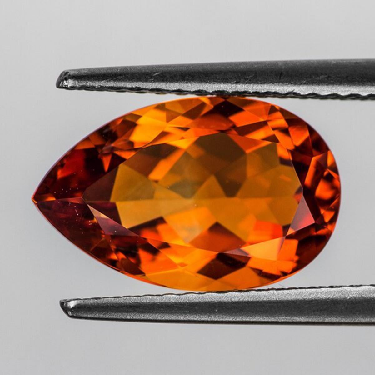 Natural CitrineSIZE ( L x W x D ) : 12.79 x 8.07 x 5.55 mmCOLOR : Madeira OrangeSHAPE : PearQUANTITY : 1 pieceLUSTER : Excellent CLARITY : Flawless-VVSHARDNESS : 7ORIGIN : Brazil