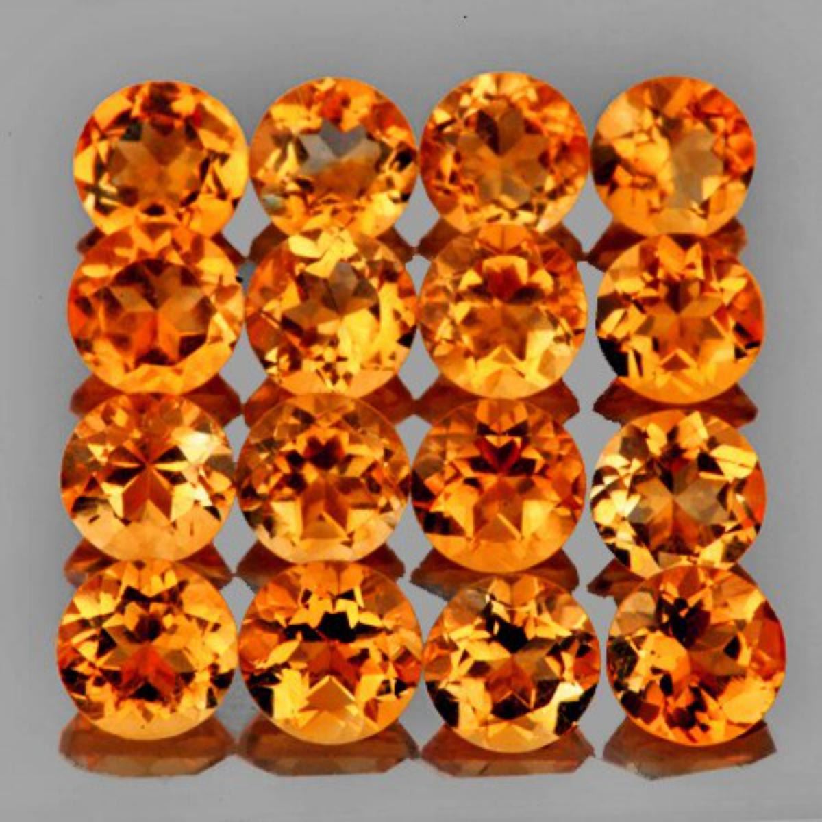 Natural Citrine; WEIGHT : 4.48 cts; SHAPE : Round; SIZE ( L x W x D ) : 4.20 mm; QUANTITY : 16 pieces (Perfect Matching Set) COLOR : Madeira Orange Yellow; CLARITY :; Flawless-VVS1; ORIGIN : Brazil HARDNESS : 7; LUSTER : AAA Fire!!! TREATMENT : 100% Natural Unheated;