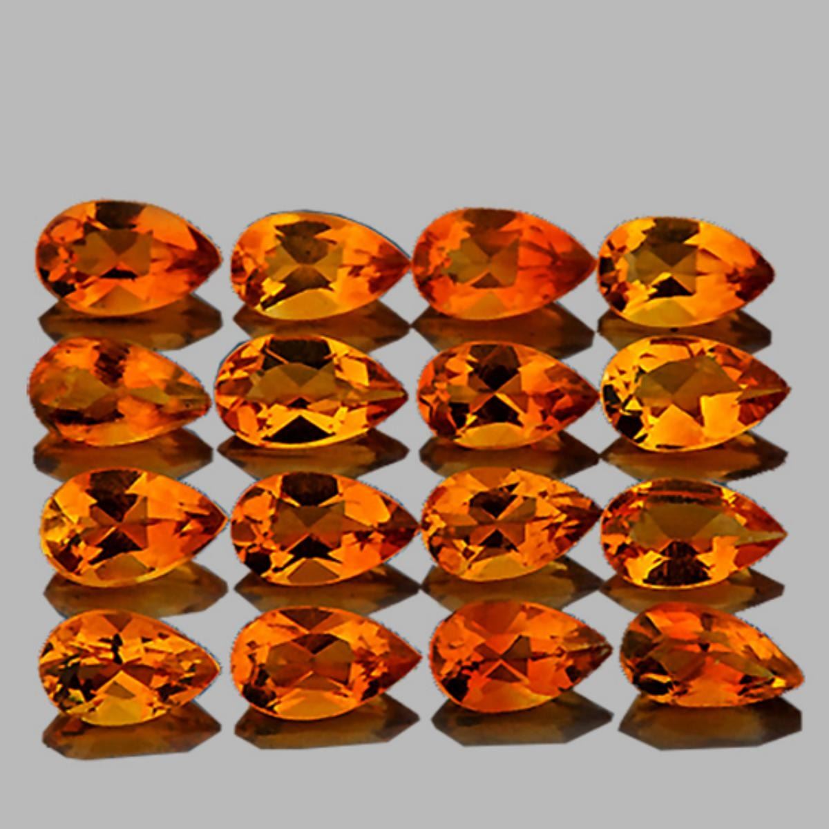 Natural Citrine; SHAPE : Pear; SIZE ( L x W x D ) : 5.00 x 3.00 mm; QUANTITY : 16 pieces ( Perfectly Matched Set ) COLOR : Madeira Golden Orange; AAA Color; CLARITY : Flawless-VVS1 ; AAA Grade; ORIGIN : Brazil; HARDNESS : 7; LUSTER : Excellent!!! TREATMENT : 100% Natural Unheated;