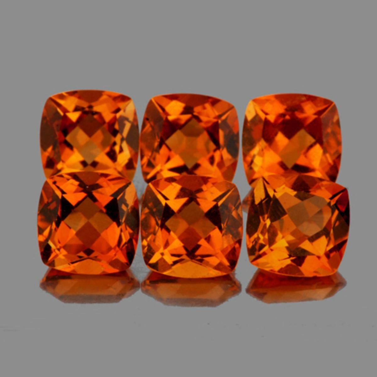 Natural Citrine; SHAPE : Cushion; SIZE ( L x W x D ) : 6.00 mm; QUANTITY : 6 pieces (Perfect Matching Set) COLOR : Madeira Orange; CLARITY : Flawless-VVS; ORIGIN : Brazil; HARDNESS : 7; LUSTER : AAA Fire!!! TREATMENT : 100% Natural Unheated;