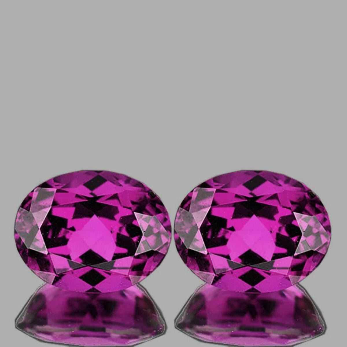 Natural Rhodolite Garnet (Umbalite) WEIGHT : 5.11 cts; SHAPE : Oval; SIZE ( L x W x D ) : 9.00 x 7.00 mm; QUANTITY : 2 pieces (Perfect Matching Pair) COLOR : Magenta Purple AAA Color; CLARITY : Flawless-VVS1 ; AAA Grade; ORIGIN : Umba Valley, Tanzania; HARDNESS : 7; LUSTER : AAA Fire!!! TREATMENT : 100% Natural Unheated;