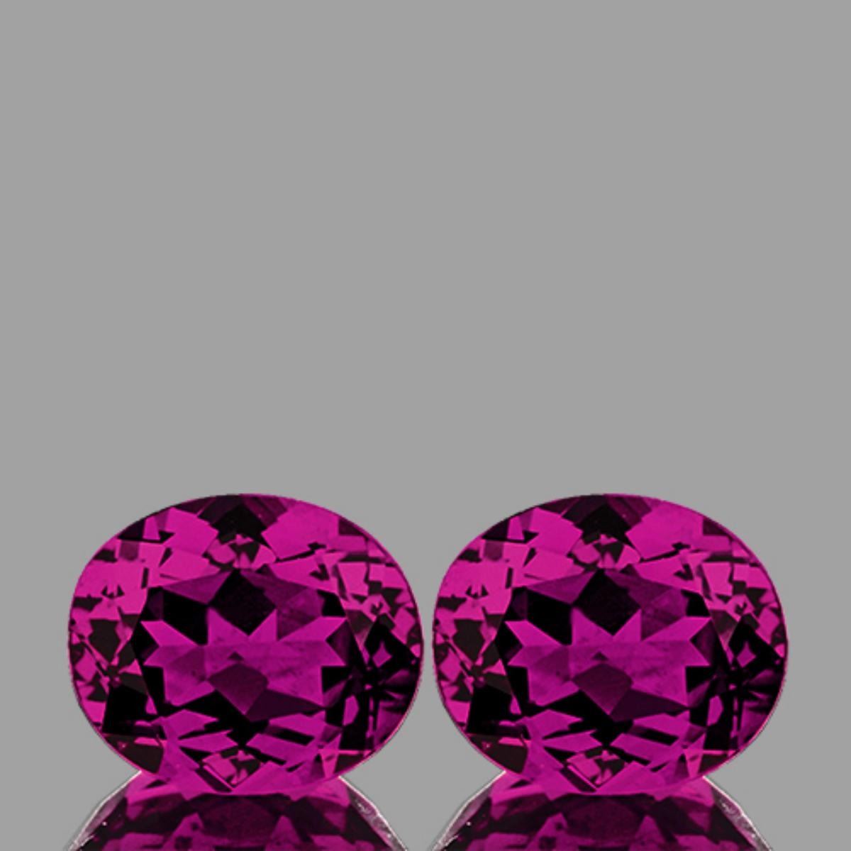 Natural Rhodolite Garnet (Umbalite) WEIGHT : 3.84 cts; SHAPE : Oval; SIZE ( L x W x D ) : 8.50 x 6.50 mm; QUANTITY : 2 pieces (Perfect Matching Pair) COLOR : Magenta Purple AAA Color; CLARITY : Flawless-VVS1 AAA Grade; ORIGIN : Umba Valley, Tanzania; HARDNESS : 7; LUSTER : AAA Fire!!! TREATMENT : 100% Natural Unheated;
