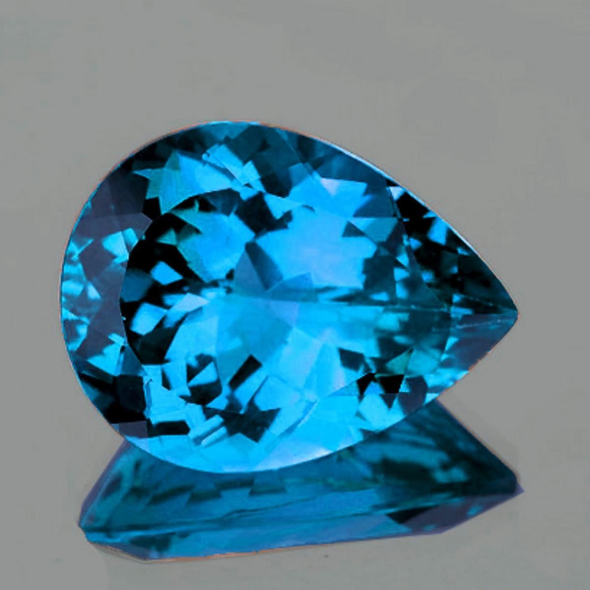 Natural Topaz WEIGHT : 26.98 cts SHAPE : Pear SIZE ( L x W x D ) : 20.53 x 15.25 x 11.77 mm QUANTITY : 1 pieces COLOR : Intense Swiss Blue CLARITY : Flawless-VVS1 ORIGIN : Brazil HARDNESS : 8 LUSTER : Excellent!!! TREATMENT : Heated
