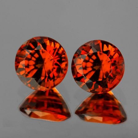 Natural Spessartite Garnet WEIGHT : 2.15 cts SHAPE : Round SIZE ( L x W x D ) : 5.50 mm QUANTITY : 2 pieces (Perfectly Matched Pair) COLOR : Mandarin Orange Best AAA Color CLARITY : Flawless-VVS1 AAA Grade ORIGIN : Nigeria HARDNESS : 7.5 LUSTER : Excellent!!! TREATMENT : 100% Natural Unheated