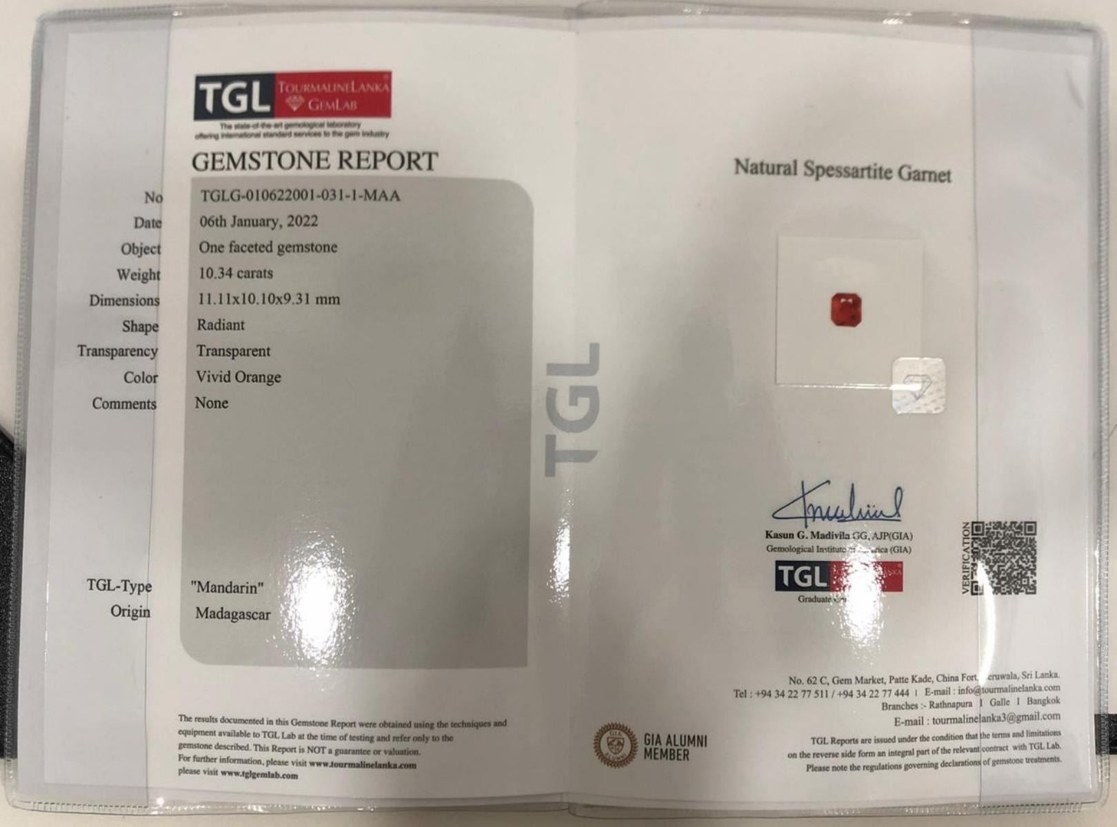 Natural Mandrin Orange Spessartite Garnet - Certified.......Size 11.11 x 10.10 MM ; Clarity - SI; Color - Vivid Orange/Mandrin(Certifed color by Lab) Origin - Madagascar;