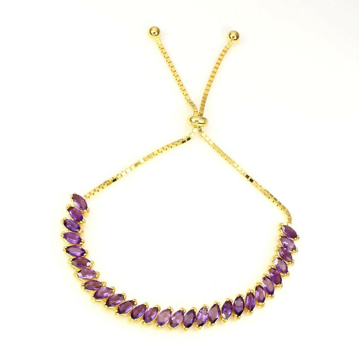 925 STERLING SILVER;PLATE....14K YELLOW GOLD; LENGTH (INCHES)10.5;MAIN STONEAMETHYSTOTHER GEMSTOTAL WEIGHT62.36 CT (TOTAL WEIGHT OF SILVER + STONE)DIMENSION* STONE 6.0 X 3.0 MM. * FACE BRACELET 105.0 X 7.0 MM.MAIN STONE SHAPEMARQUISE CUT;MAIN STONE COLORTOP INTENSE PURPLE;CLARITY/GRADEIF TO VVS;LUSTERGORGEOUS;TREATMENTUNHEATED;ORIGINURUGURYHARDNESS7.;