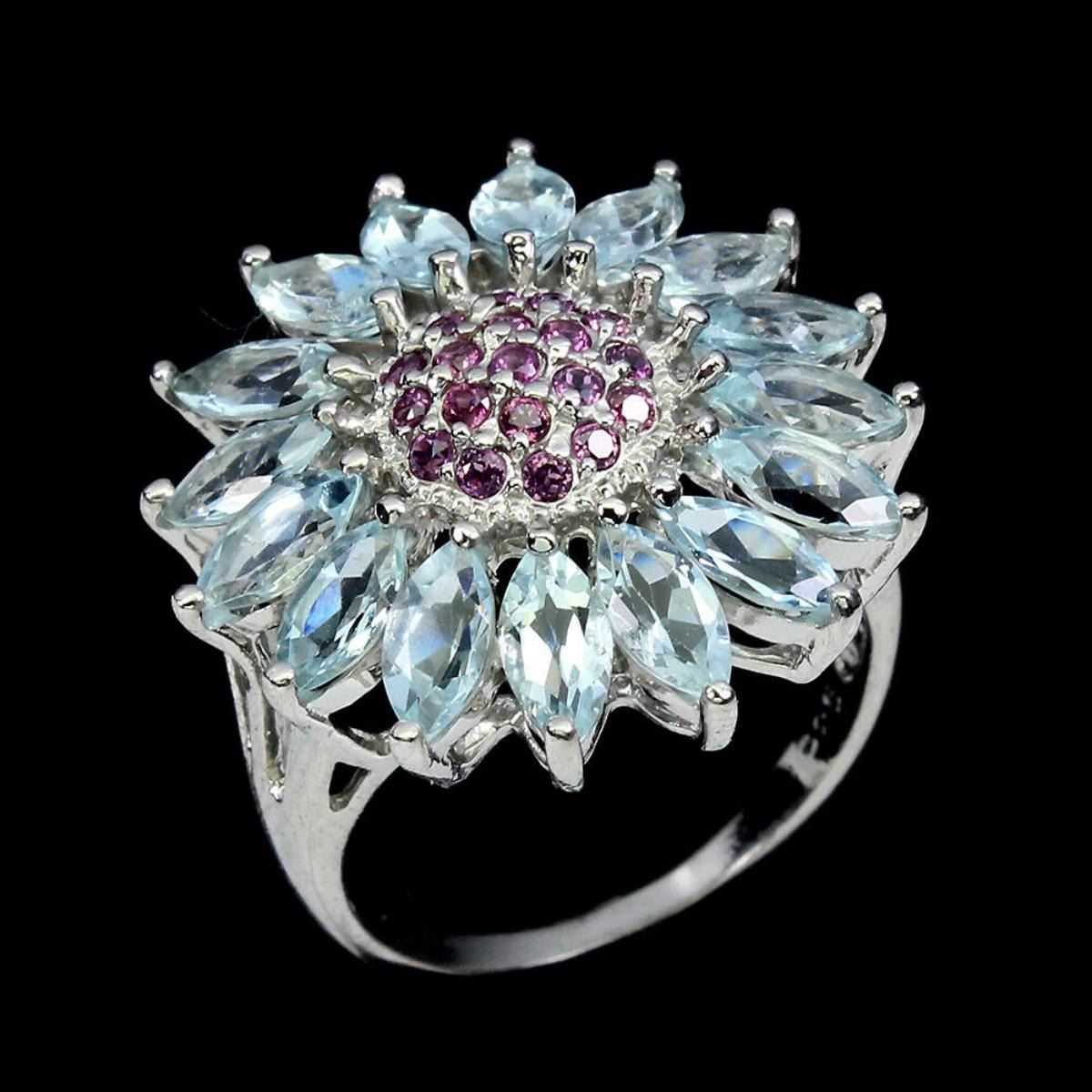 925 STERLING SILVER;PLATE-14K WHITE GOLD;RING SIZE/Reziable-7.5;MAIN STONE-AQUAMARINE;OTHER GEMS-RHODOLITE GARNET;TOTAL WEIGHT-4.77 GRAM (TOTAL WEIGHT OF SILVER + STONE)DIMENSION-* STONE 1.5 TO 6.0 X 3.0 MM.;* FACE RING- 23.0 X 22.0 MM.;MAIN STONE SHAPE-MARQUISE CUT;MAIN STONE COLOR-AQUA BLUE;CLARITY/GRADE-IF TO VVS;TREATMENT-UNHEATED;ORIGIN-BRAZIL;HARDNESS-7;