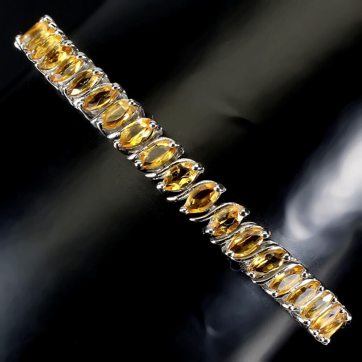 925 STERLING SILVER;PLATE-14K WHITE GOLD;LENGTH (INCHES)-7.5;MAIN STONE-CITRINE;TOTAL WEIGHT-18.48 GRAM (TOTAL WEIGHT OF SILVER + STONE);DIMENSION-* STONE 6.0 X 3.0 MM. * TOTAL LENGTH 7.5 INCHES. * FACE BRACELET 175.0 X 7.0 MM.MAIN STONE SHAPE-MARQUISE;MAIN STONE COLOR- YELLOW;CLARITY/GRADE-IF TO VVS;TREATMENT-UNHEATED;ORIGIN-BRAZIL;HARDNESS-7;
