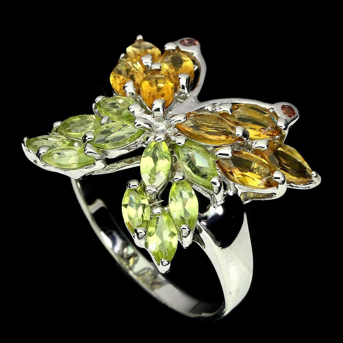 925 STERLING SILVER;PLATE-14K WHITE GOLD;RING SIZE/resizeable-8.5;MAIN STONE-CITRINE;OTHER GEMS-PERIDOT, SAPPHIRE;TOTAL WEIGHT-5.04 GRAM (TOTAL WEIGHT OF SILVER + STONE)DIMENSION-* STONE 1.5 TO 6.0 X 3.0 MM. * RING SIZE 8.5 * FACE RING- 22.0 X 20.0 MM.;MAIN STONE SHAPE-MARQUISE CUT;MAIN STONE COLOR- RICH YELLOW;CLARITY/GRADEIF;TREATMENT-UNHEATED;ORIGIN-BRAZIL, PAKISTAN;HARDNESS-7;